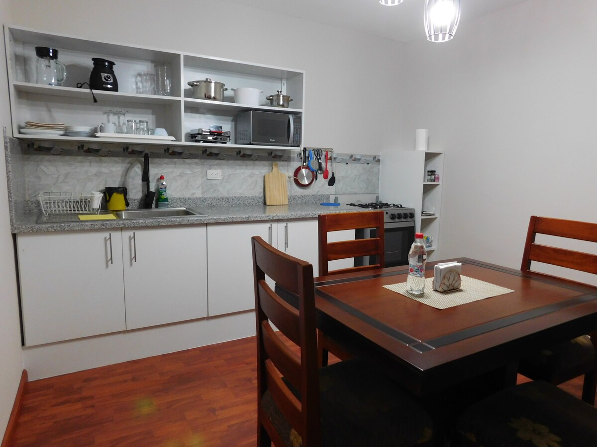 Ciesz się niesamowitym doświadczeniem w tym centralnie położonym, przestronnym apartamencie o powierzchni 115 m2. Posiada trzy sypialnie, wszystkie bardzo dobrze wyposażone w szafy, 2 pełne łazienki, salon, w pełni wyposażoną kuchnię z ekspresem do kawy, piekarnik elektryczny, żelazko, wszystkie nowe urządzenia i wyposażoną pralnię. Znajduje się kilka przecznic od centrum Azogues, ma dostęp do transportu publicznego u stóp budynku i znajduje się w pobliżu wszystkich atrakcji turystycznych w okolicy.