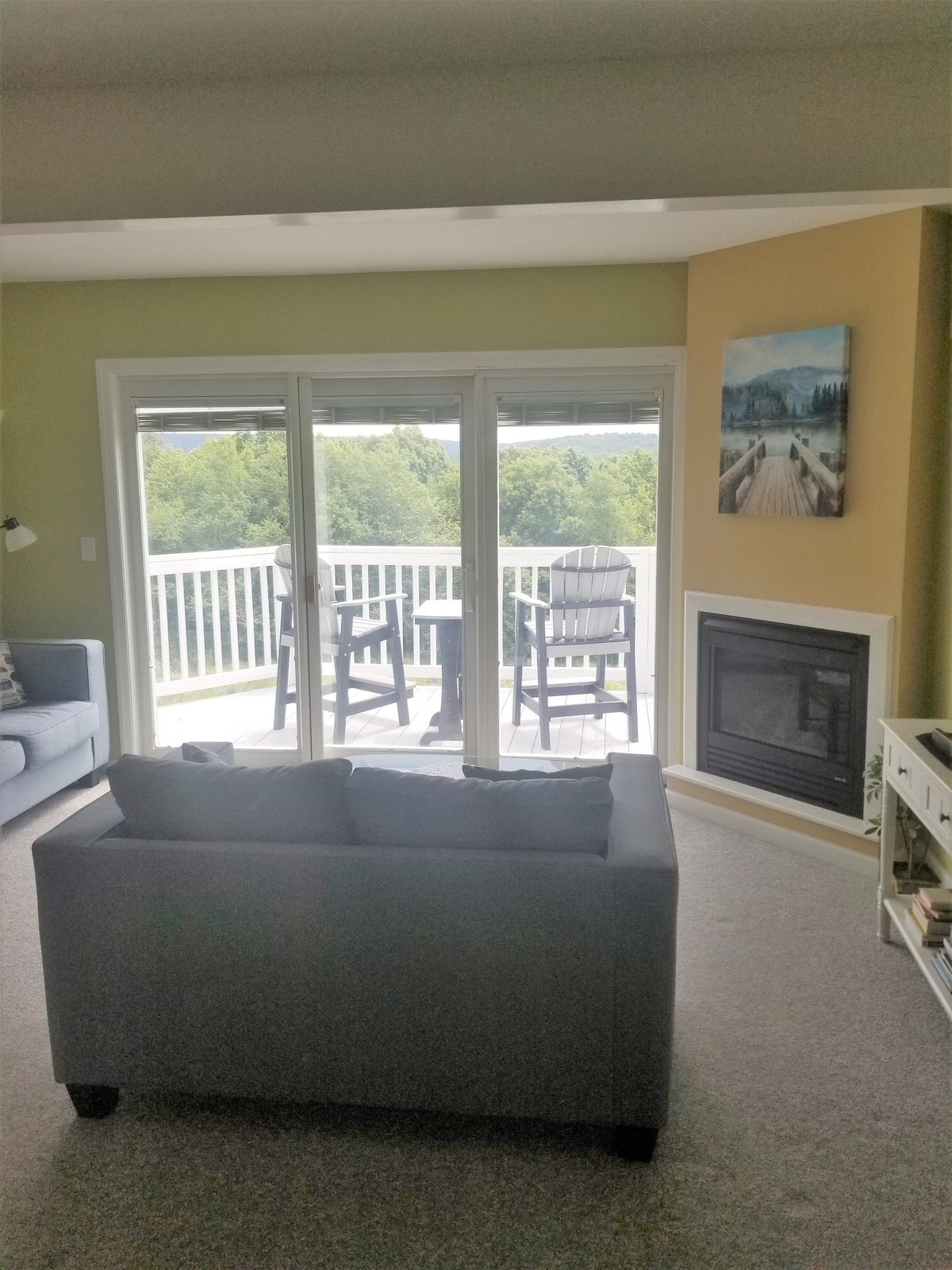 Odpręż się i zrelaksuj w tej spokojnej, stylowej przestrzeni. Zupełnie nowe, piękne mieszkanie z jedną sypialnią nad garażem, zaledwie 5 mil od jeziora Deep Creek. Pięknie zaprojektowana przestrzeń z dużą kuchnią o jakości rzemieślniczej, łóżkiem neoindustrialnym z orzecha włoskiego w rozmiarze king size, umywalką i nakładką ścienną, lampą przegubową, wszystko wykonane przez lokalnego rzemieślnika. Skórzana rozkładana kanapa z łóżkiem typu queen może pomieścić dwóch dodatkowych gości. Zrelaksuj się przy ognisku i słuchaj ptaków w lesie.