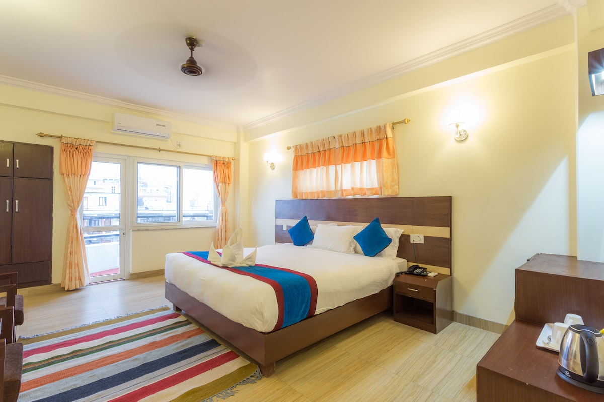 W tym słonecznym, jasnym, klimatyzowanym, przytulnym i spokojnym pokoju zaprojektowanym z myślą o komforcie i relaksie poczujesz się jak w domu. Pokój ma prywatny balkon, dźwiękoszczelne okna z podwójnymi szybami, łóżko typu queen z grubym materacem sprężynowym i pianką z pamięcią kształtu, pościel premium oraz prywatną łazienkę z prysznicem z ciepłą wodą i naturalną wentylacją. Szybkie Wi-Fi jest wliczone w cenę. Oferuję również inny pokój o nazwie „Experience Authentic Tibetan Room” oraz jednodniowe wycieczki kulturalne w Pokharze.