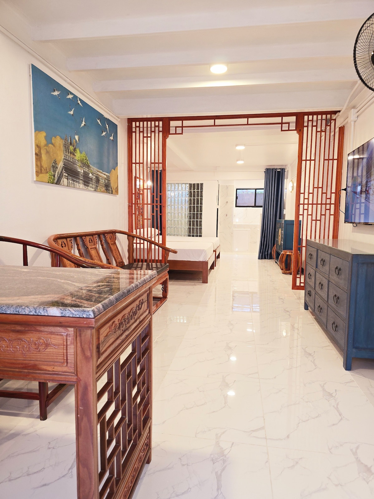 Witamy w naszym przytulnym studio w samym sercu Asoke, jednej z najbardziej tętniących życiem dzielnic Bangkoku. Dzięki BTS i MRT, które są tuż za rogiem, dotarcie do dowolnego miejsca w mieście jest szybkie i łatwe. Studio jest jasne i dobrze zaprojektowane, z otwartą przestrzenią mieszkalną z trzema wygodnymi łóżkami i prywatną łazienką. Należy pamiętać, że nasz budynek to mały dom szeregowy bez windy, a lokal znajduje się na 2. piętrze, do którego prowadzą schody.