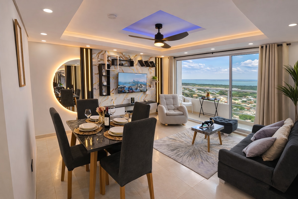 Odkryj magię Kartageny z tego spektakularnego apartamentu na 14. piętrze, gdzie duży balkon z JACUZZI oferuje imponujące widoki na Morze Karaibskie i Ciénaga de la Virgen. Idealne miejsce na relaks, gdzie można podziwiać wyjątkowe zachody słońca. Ta przestrzeń łączy w sobie luksus i komfort, dzięki czemu Twój pobyt będzie niezapomnianym przeżyciem. Idealne miejsce, aby się zrelaksować i podziwiać urok miasta.