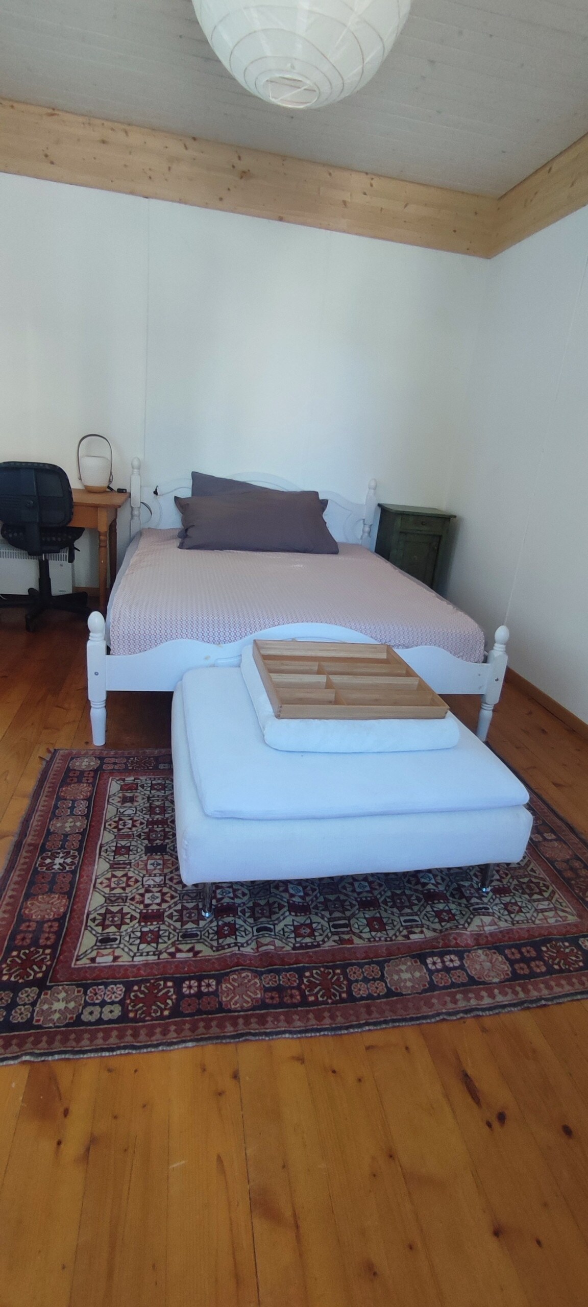 Reizender Pavillon mit Doppelbett (Bettsofa) und Badezimmer. Zum Heizen des Häuschens feuern Sie das Heizcheminée ein, gemütliche Wärme ist Ihnen sicher! Im Sommer steht zusätzlich ein Massenlager im Stall zur Verfügung, z.B. für Familien. Es steht eine Küche bereit, ca. 20m vom Häuschen entfernt. Auf Wunsch stellen wir gegen einen Aufpreis von Fr. 13.- pro Person ein Frühstück bereit, das im voraus zu bezahlen ist da wir leider schlechte Erfahrungen gemacht haben .