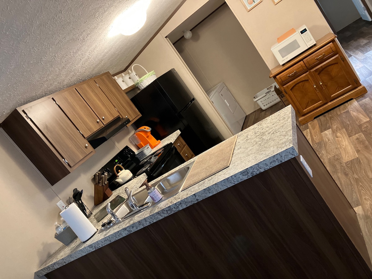 Doświadczenie na farmie / relaks i ciesz się naszym 15-akrowym małym kawałkiem nieba. Usiądź na tarasie z widokiem na staw rybny, obserwuj małe zwierzęta bawiące się na polu. Zobacz kozy, miniaturowe kucyki/osły. Bezpłatny, ogrodzony, bezpieczny parking dla przyczepy do quadów/łodzi. W pełni wyposażona kuchnia, wyłożony kafelkami prysznic, pralka/suszarka, łóżko typu Queen, sofa typu Queen, 65-calowy telewizor i grill gazowy na tarasie. Pole o powierzchni 5 akrów jest otwarte do zwiedzania wokół stawu. Uwielbiamy przyjmować gości, zapytaj o zniżki na dłuższe pobyty dla pielęgniarek podróżnych lub pracowników zdalnych