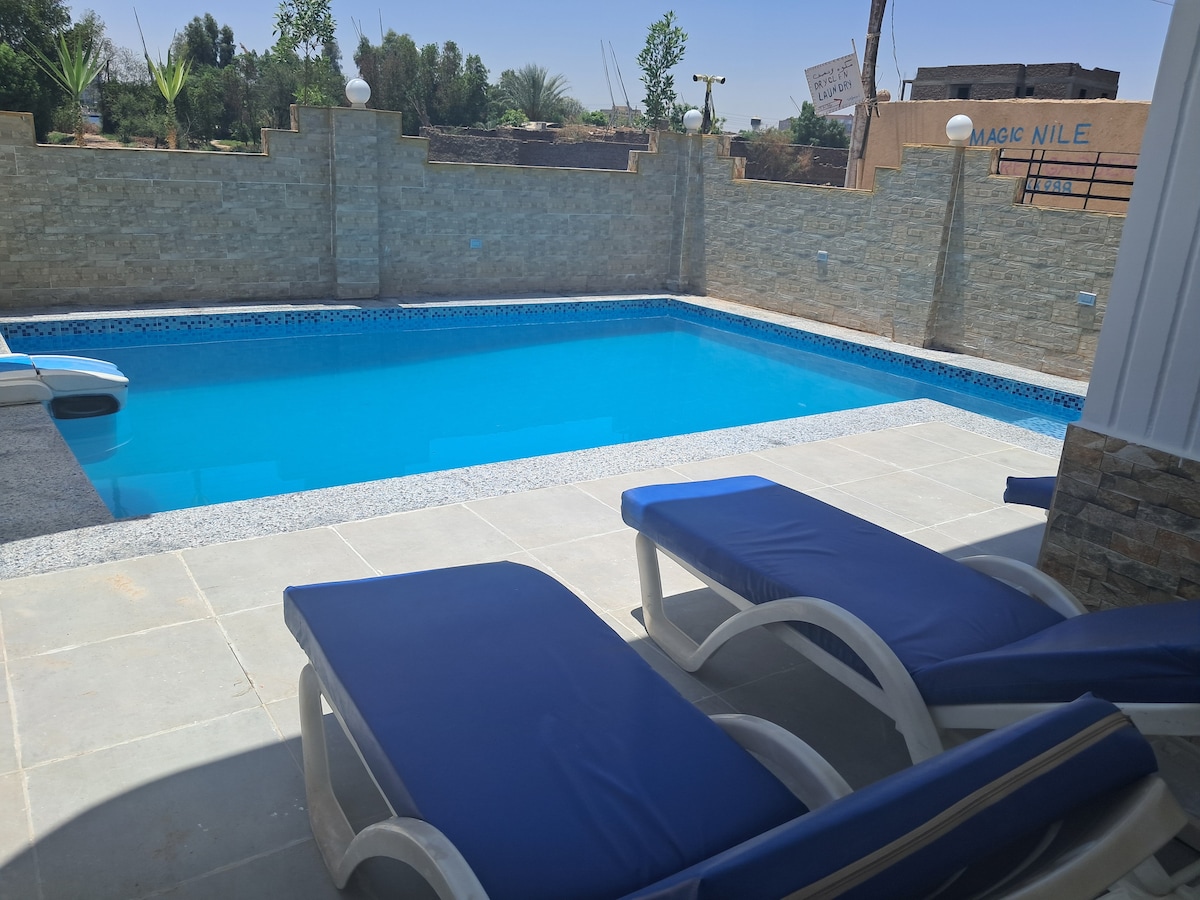 new quiet apartment with swimming pool and garden and perfect location 1 minute walking and u can reach everything like ATM . restaurants . pharmacy. supermarket and also car station to reach all temples 2minutes walking to reach the ferry to East ask us in chat about the 3 day program to visit all temples with private car and tour leader and hot air Ballon and trip in the nile by fluka and and other things
