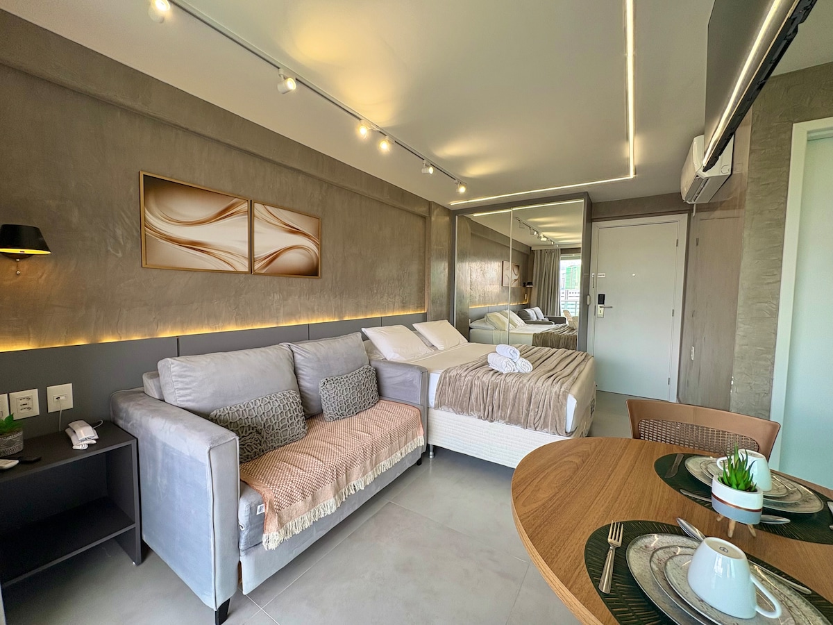Luxury Studio, zaprojektowane ze stylem i elegancją z technologią na Twoją korzyść. - ALEXA, Twoja dostępność. - TV SMART 4K. - Pełna kuchnia wszystkiego. - Box Masjetic Queen Bed. - Całodobowa recepcja - BEZPŁATNY parking. - Near Shopping Park, shops and conveniences, bakeries, pharmacy, gas station, restaurants, corner, college, etc. - 50 m od Cruz das Almas Beach, 700 m od Jatiuca Beach i 1,4 km od Jacarecica Beach. WSKAZÓWKA: skorzystaj z mapy online.