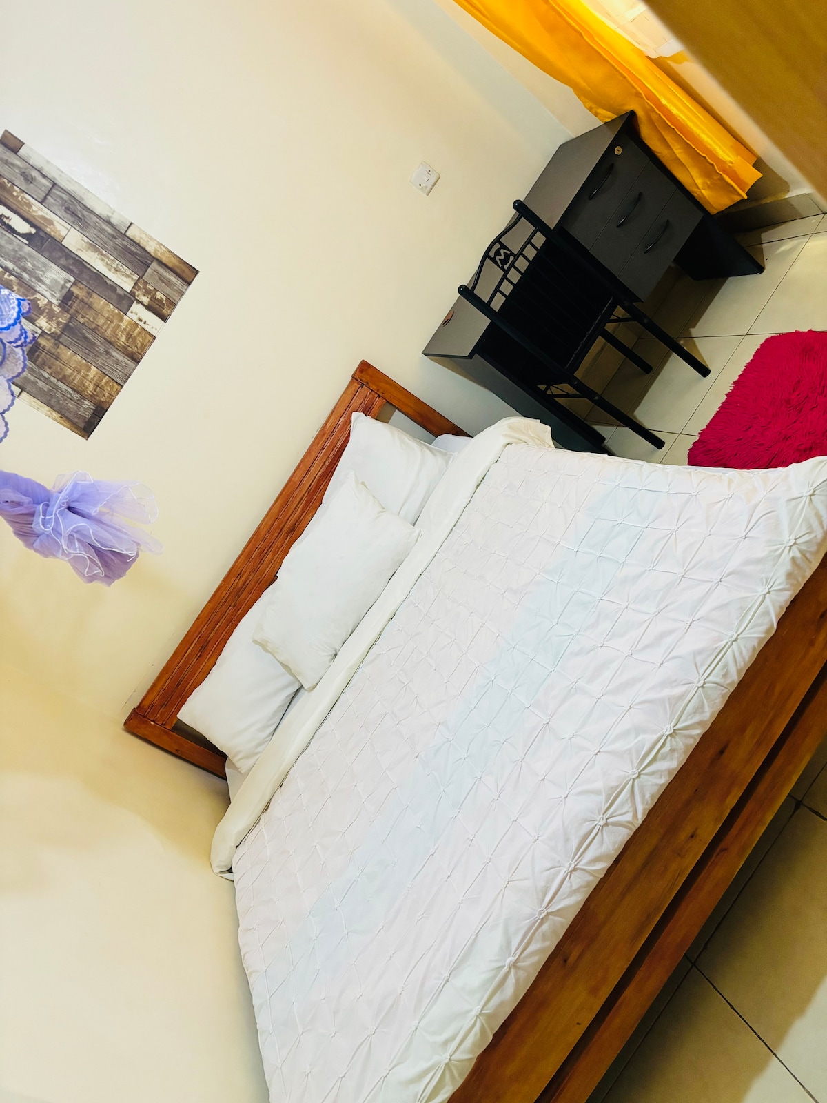 Witamy w „The Green Nook”. Nasz nowoczesny apartament z 4 sypialniami w Garden City Residences w Nairobi oferuje przestronny, komfortowy pobyt ze stylowymi wnętrzami. Otwarta część dzienna, w pełni wyposażona kuchnia i trzy dobrze wyposażone sypialnie. Korzystaj z udogodnień, takich jak szybkie Wi-Fi, bezpieczny parking, basen i siłownia. Znajdujemy się w centrum handlowym Garden City Mall, w pobliżu sklepów, restauracji i kluczowych atrakcji Nairobi, co sprawia, że jest to idealny wybór zarówno dla osób podróżujących służbowo, jak i rekreacyjnie.