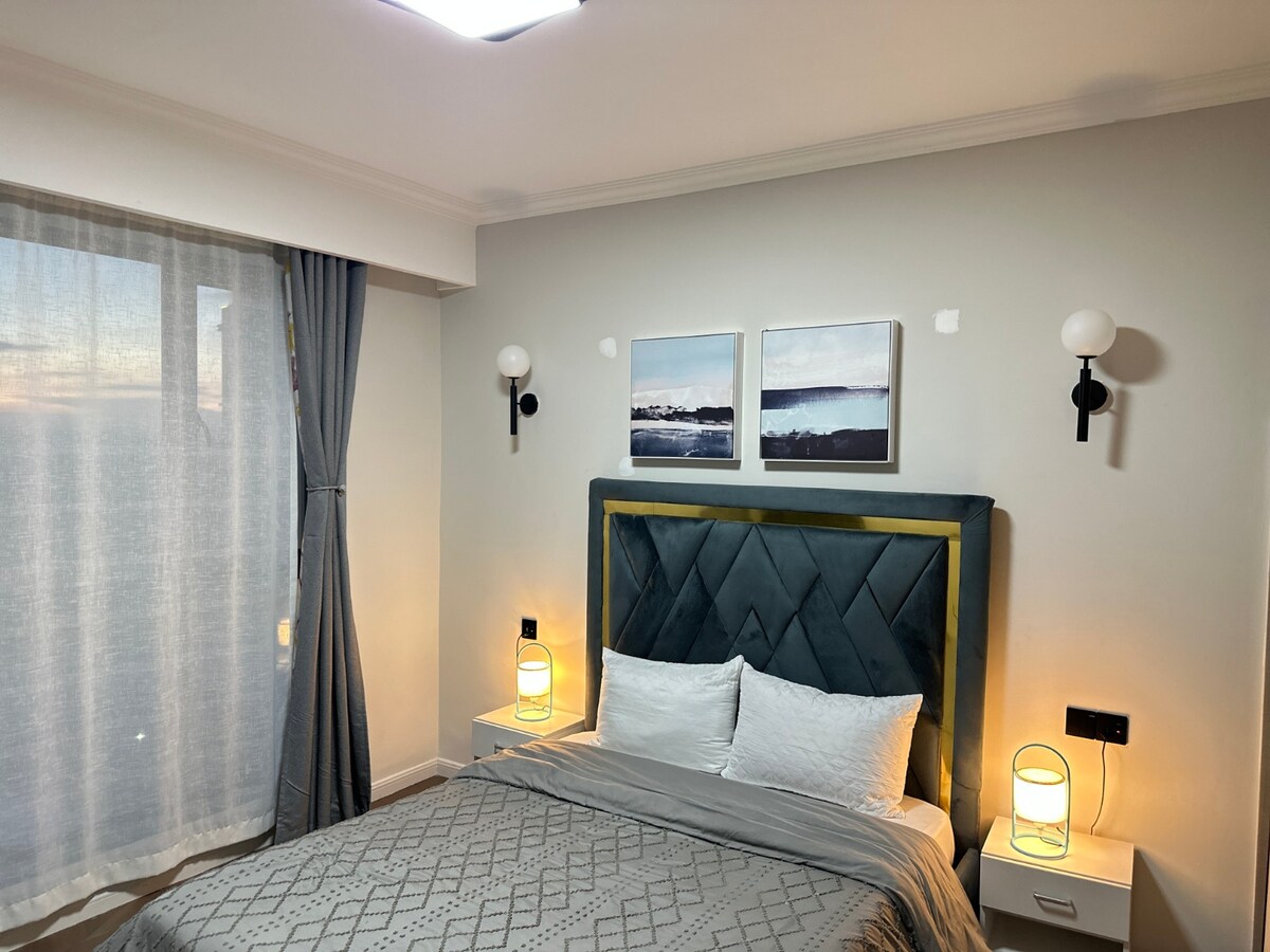 Zarezerwuj i rozkoszuj się naszym apartamentem 3BR o tematyce safari w pobliżu JKIA i SGR. Każda sypialnia jest starannie umeblowana, aby goście czuli się komfortowo podczas pobytu i spali. Salon jest nowoczesny, z 40-calowym telewizorem i przytulną sofą, która prowadzi na balkon, gdzie można złapać loty na lotnisko. Kuchnia jest w pełni wyposażona w kuchenkę, lodówkę, ekspres do kawy i pralkę. Jeśli potrzebujesz pomocy, poproś o pomoc. Wszyscy są mile widziani.