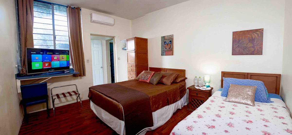 Zakwaterowanie w bardzo centralnej części Monterrey, posiada dużą sypialnię z miejscem dla 4 osób, ekran ze smart TV, WIFI, łazienkę. Jest wewnątrz domu, ale całkowicie niezależny i ekskluzywny dla moich gości, z niezależnym wejściem i jest miejsce do zaparkowania przed domem, bardzo bezpieczne. Jest tu też część socjalna (nie współdzielona), gdzie znajduje się pokój gier, taras z widokiem na Cerro de la Silla, jadalnia w ogrodzie, grill i hamak.