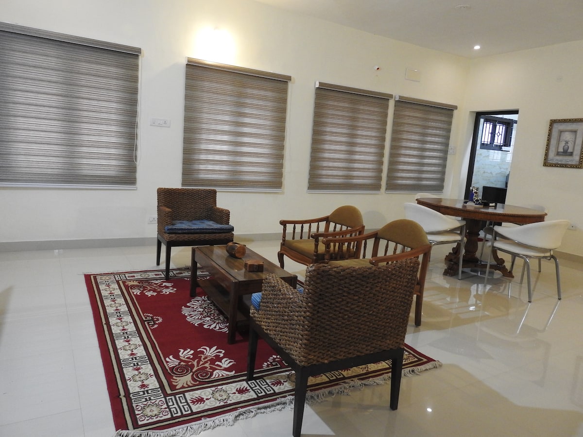 Zatrzymaj się w luksusie i komforcie w naszym przestronnym domu w Nataraja Nagar w Madurai (625016). Zaledwie kilka minut drogi od kultowych atrakcji, takich jak świątynia Meenakshi Amman, pałac Thirumalai Nayakkar i Muzeum Gandhi, nasz dom zapewnia łatwy dostęp do wszystkiego, co oferuje Madurai. Ciesz się tętniącym życiem jedzeniem ulicznym, zakupami i lokalną kulturą wzdłuż Bypass Road, w odległości krótkiego spaceru. Dzięki nowoczesnym udogodnieniom i relaksującej atmosferze będziesz cieszyć się niezapomnianym pobytem. Zarezerwuj już dziś niezapomnianą atrakcję w Madurai!
