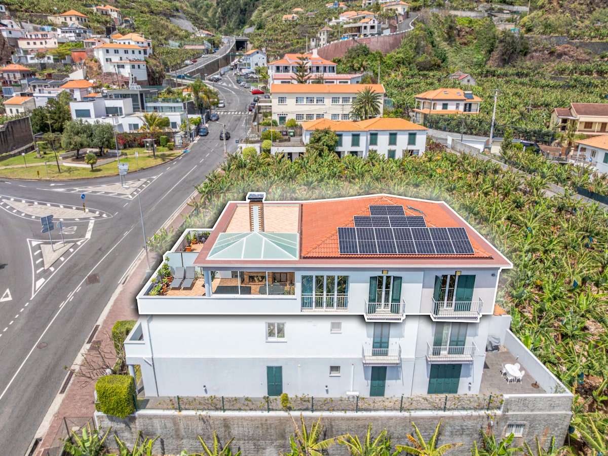 Ta wspaniała, nowoczesna, prywatna willa Miradouro da Baleia (Wieża Wielorybów) ma jedne z najlepszych widoków na ocean i góry na wyspie, z basenem bez krawędzi i znajduje się w doskonałym miejscu otoczonym spektakularnymi klifami, polami uprawnymi, plantacjami bananowymi i winnicami, została starannie i gustownie odrestaurowana/zbudowana w 2018 roku, oferując wyjątkowe doświadczenie zakwaterowania w portugalskim stylu letnim!
