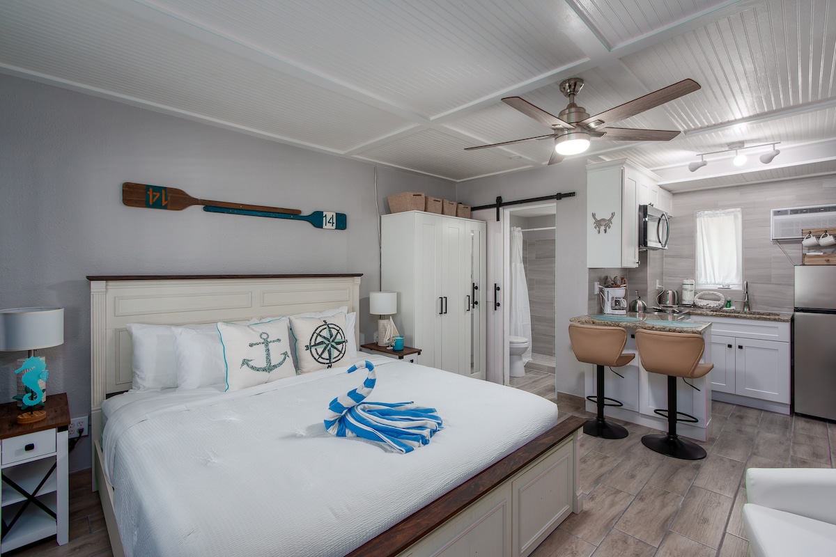 Studio przy plaży • Krok do podgrzewanego basenu • Duże łóżko (king)