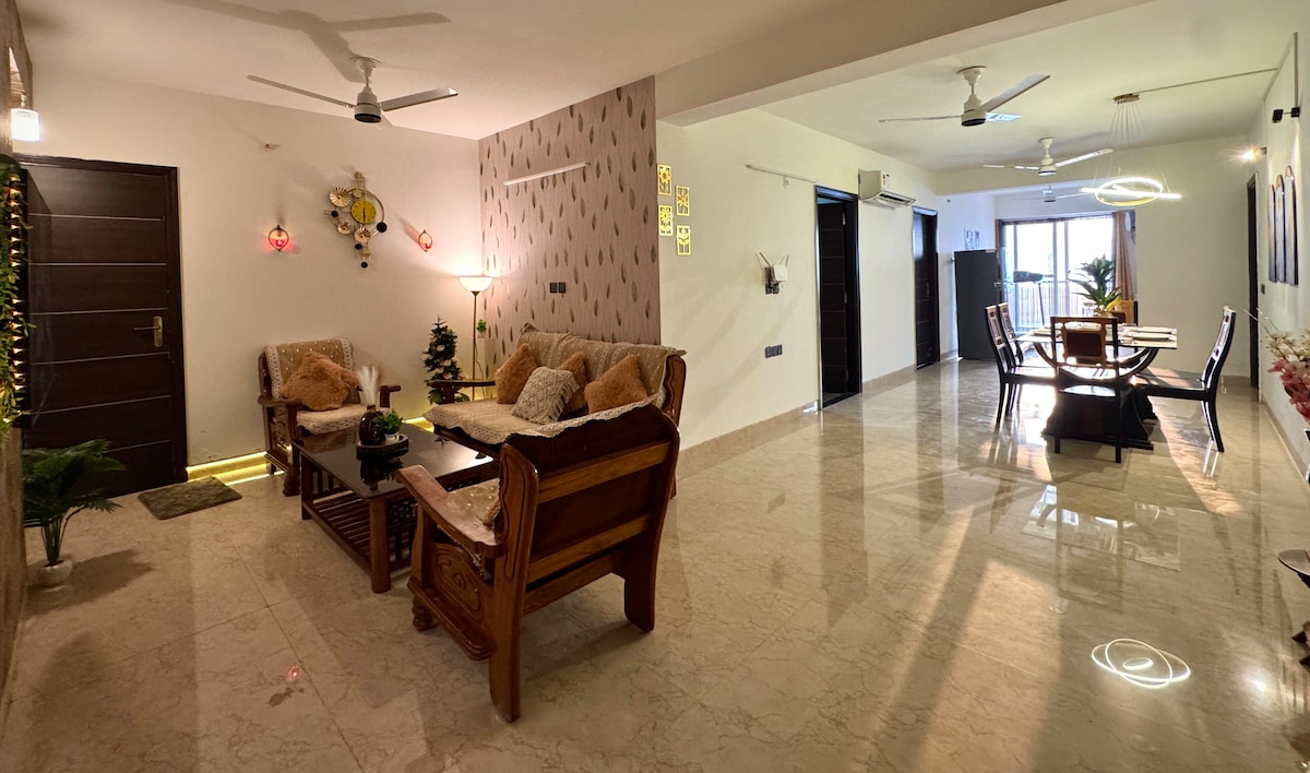 Luksusowy apartament 2 BHK z przestronnymi wnętrzami i trzema dużymi balkonami Doświadcz komfortu i relaksu z rodziną i przyjaciółmi w tym luksusowym apartamencie 2 BHK. W pełni umeblowane i wyposażone w nowoczesne udogodnienia, to spokojne miejsce jest przeznaczone dla wymagających podróżników. To stylowe miejsce na pobyt jest idealne na wycieczki grupowe. Wszystkie udogodnienia są dostępne jak w domu. Zapewniamy w pełni czysty i higieniczny produkt dla wygody naszych gości.