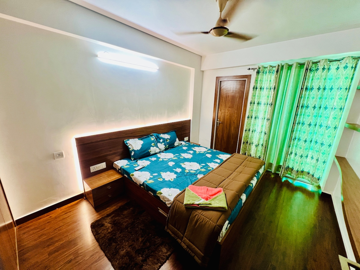 2 BHK Luxury Apartment with Spacious Interiors and Three Large Balconies Experience comfort and relaxation with your family and friends at this luxurious 2 BHK apartment. Fully furnished and equipped with modern amenities, this peaceful retreat is designed for the discerning traveler. This stylish place to stay is perfect for group trips. And all facilities available like a Home. We provide fully clean and hygiene product for our guest’s comfort.