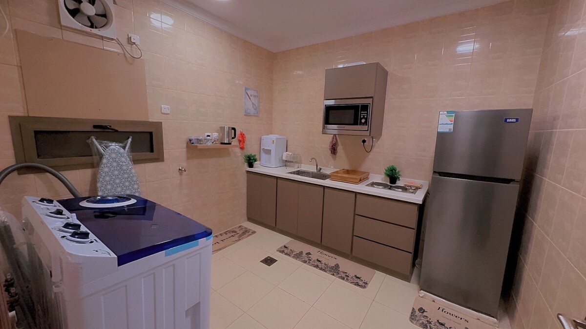 استمتع مع كامل العائلة في هذا المسكن الأنيق. شقة مودرن فاخرة luxury apartment * صممت وجهزت لتجد راحتك * عبارة عن غرفتين ( ماستر / و غرفة ٣ أسرة) وصالة واسعة مفتوحة على المطبخ المودرن بتصميم أنيق( شاشة سامسونج سمارت WiFi) مطبخ مجهز بشكل كامل - ثلاجة - فرن + ميكرويف+ غسالة ملابس - جميع مستلزمات المطبخ كاملة- - موقد ( غاز / كهربائي) بالإضافة للموقع المميز 8 دقائق بالسيارة عن محطة القطار 10 دقائق بالسيارة عن المطار 5 دقائق بالسيارة عن مسجد قباء 15 دقيقة بالسيارة عن المسجد النبوي الشريف