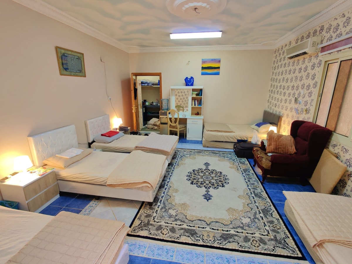 Mieszkanie składające się z trzech pokoi, sześciu łóżek, salonu i kuchni, oddalone od Haramu o 3,5 km, od meczetu Sayyid al-Shuhada o 1,8 km, od góry Uhud o 2,2 km. W dzielnicy znajduje się supermarket, restauracje, apteka i pralnia w pobliżu mieszkania Meczet Proroka jest oddalony o 8 minut jazdy samochodem