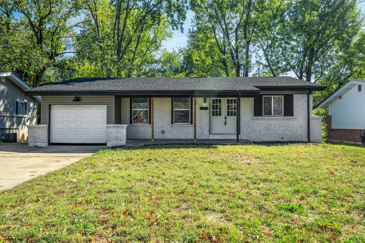Witamy na naszym uroczym ranczu z dwiema sypialniami, dogodnie położonym przy autostradzie międzystanowej nr 270, w cichej dzielnicy Granite City, zaledwie 15 minut jazdy od centrum St. Louis. Zrelaksuj się w dobrym stylu dzięki pełnym udogodnieniom kuchennym, Roku Smart TV, szybkim Wi-Fi, bezpiecznym parkingiem poza ulicą, pluszowym łóżkiem typu king i queen, przytulnym futonem w głównej części, a także dobrze wyposażonej pralni z pełnowymiarową pralką i suszarką.