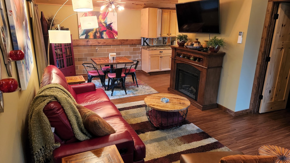 Stay close to Nestlé, Anderson University, and within convenient driving distance of Ball State University in this recently renovated three- bedroom home that sleeps up to seven guests. The home is ideal for contractors, traveling professionals, visiting faculty, and campus families. It features a king bed, two queen beds, a dedicated workspace, fireplace, two smart TVs, free parking, & more. Located just five minutes from the famous Uranus Fudge Factory and near major roads for easy commuting.