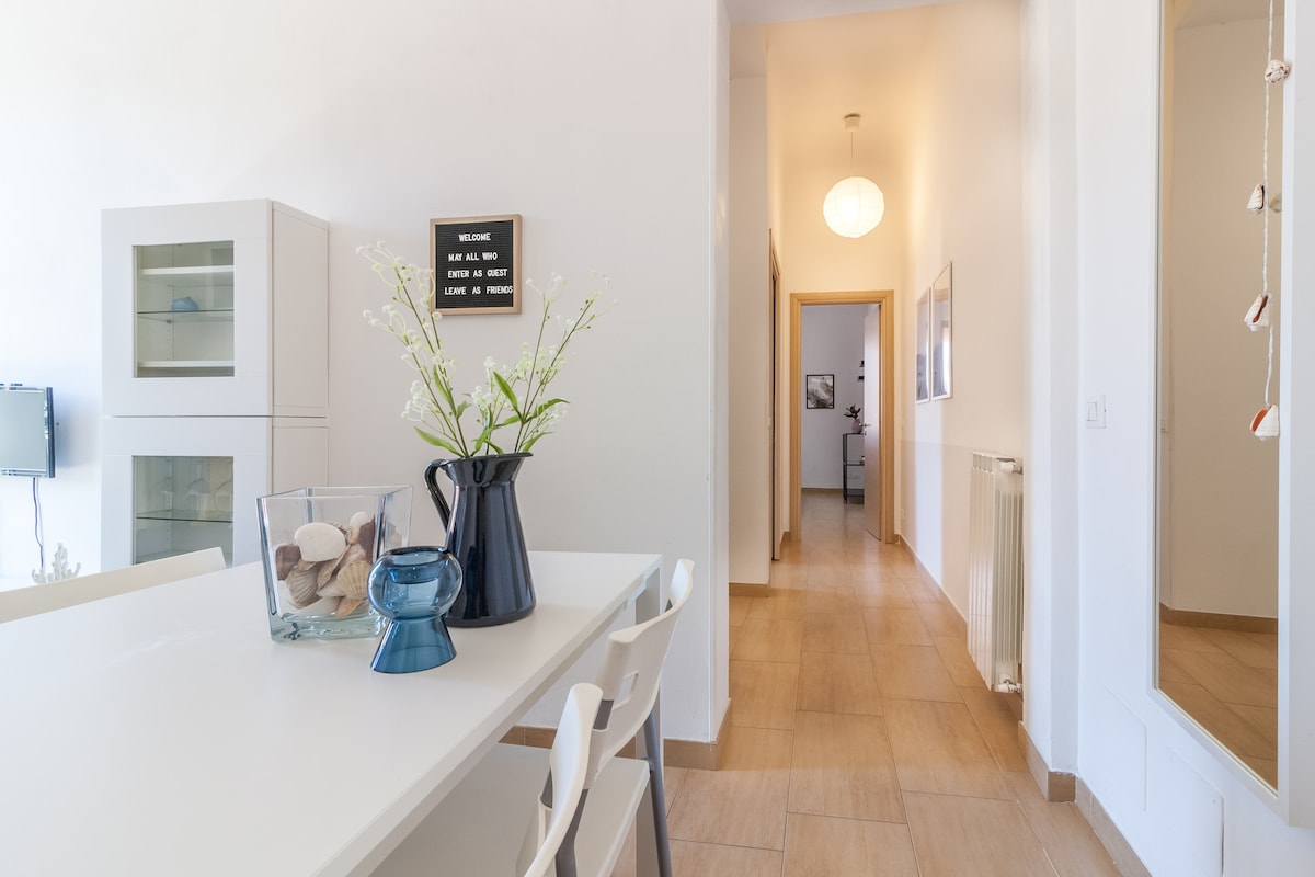 Witaj w Casa Letizia! 700 m od stacji: 5–7 minut spacerem do pociągów do Cinque Terre. Przytulne i jasne dwupokojowe mieszkanie, idealne na zwiedzanie okolicy bez stresu. Zarezerwowany parking 50 m od hotelu i bezpłatne miejsca na pobliskich ulicach. Wygodny załadunek/rozładunek przed drzwiami. Szybkie Wi-Fi, klimatyzacja i pełna kuchnia. Szybkie i łatwe zameldowanie. Akceptujemy małe, dobrze wychowane psy (po wcześniejszym powiadomieniu). Prosimy, aby nie zostawiać ich samych ani nie pozwalać im wspinać się na łóżko i sofę.
