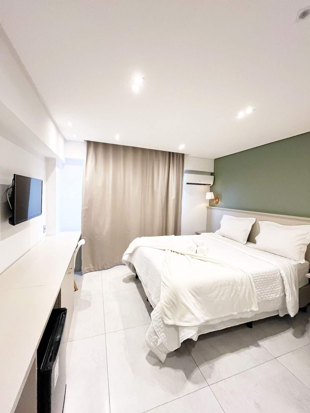 Este lugar tem um estilo próprio, seu momento pé na areia na orla de Manaíra. Planejamos tudo para você viver sua melhor experiência. Acomodamos até 2 pessoas. Enxoval de cama 300 fios Jogos de banho e praia Trussardi. Amenidades: L’occitane Blackout duplo para seu sono perfeito Cafeteira Nespresso Adega Frigobar Steamer (ferro vertical) Taças para vinho e espumante de cristal Serviço de camareira diários Recepção 24hs Piscina com borda infinita Bar molhado Porte-cochère