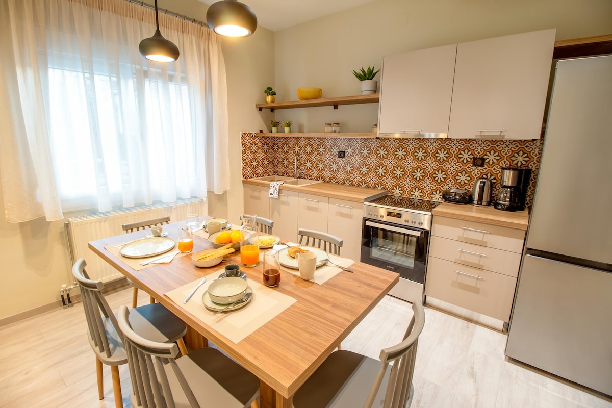 Apartament na pierwszym piętrze o powierzchni 50 m², bardzo blisko centrum Volos (zaledwie 7 minut pieszo). Posiada autonomiczne ogrzewanie, Wi-Fi, 2 telewizory 32'', jeden telewizor Smart TV, Netflix i kuchenkę mikrofalową. Jasne i ciepłe, odpowiednie na przyjemny pobyt w Volos.