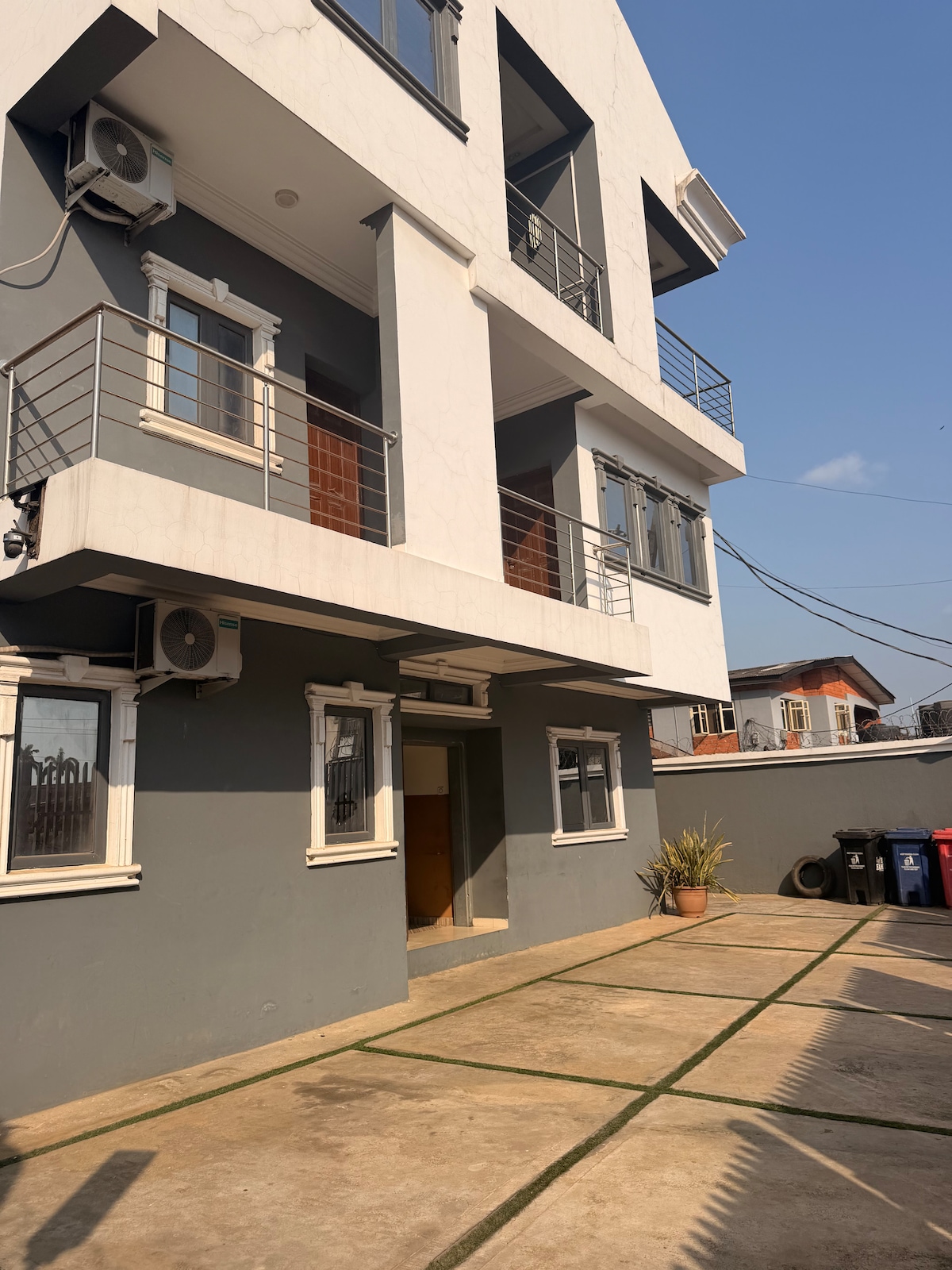Doświadcz luksusu w tym stylowym apartamencie z 3 sypialniami z łazienkami i eleganckimi wnętrzami. Zaledwie 5 minut od lotniska Lagos i 3 minuty od Ikeja City Mall. Ciesz się szybkim WiFi 5G, smart TV, klimatyzacją, pełną kuchnią, pralką/suszarką i zasilaniem 24/7 w ogrodzonym osiedlu z jednolitą ochroną. Idealne dla rodzin, grup lub osób podróżujących służbowo. Samodzielne zameldowanie i profesjonalne zarządzanie zapewniające bezproblemowy pobyt.
