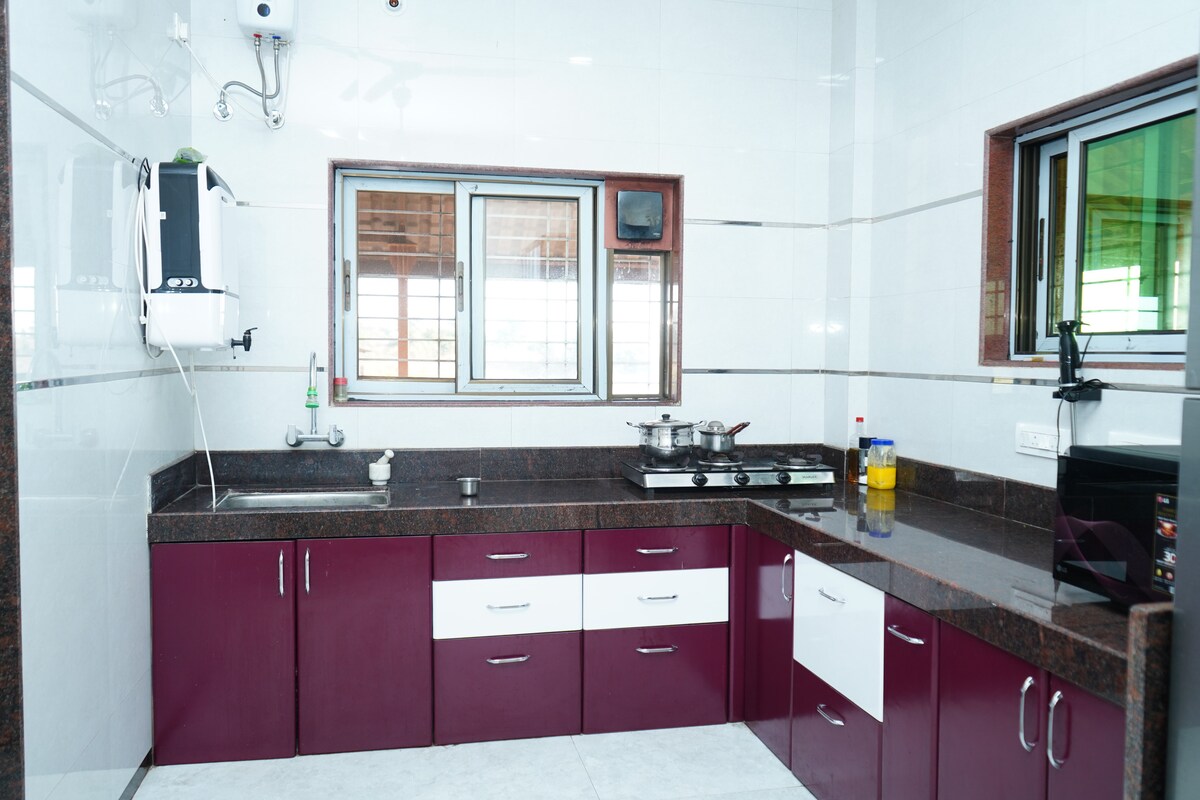 Zanurz się w spokoju natury w naszym uroczym gospodarstwie 1BHK otoczonym zielenią, polami ryżowymi i wzgórzami. Idealne dla par, rodzin lub przyjaciół, to rustykalne miejsce na wypoczynek z otwartym dachem, grillem i przestrzenią do relaksu. Wypij herbatę na werandzie, rozpal ognisko i oddychaj świeżym wiejskim powietrzem. W otoczeniu bujnych plantacji i wzgórz Spokojna rzeka w odległości spaceru