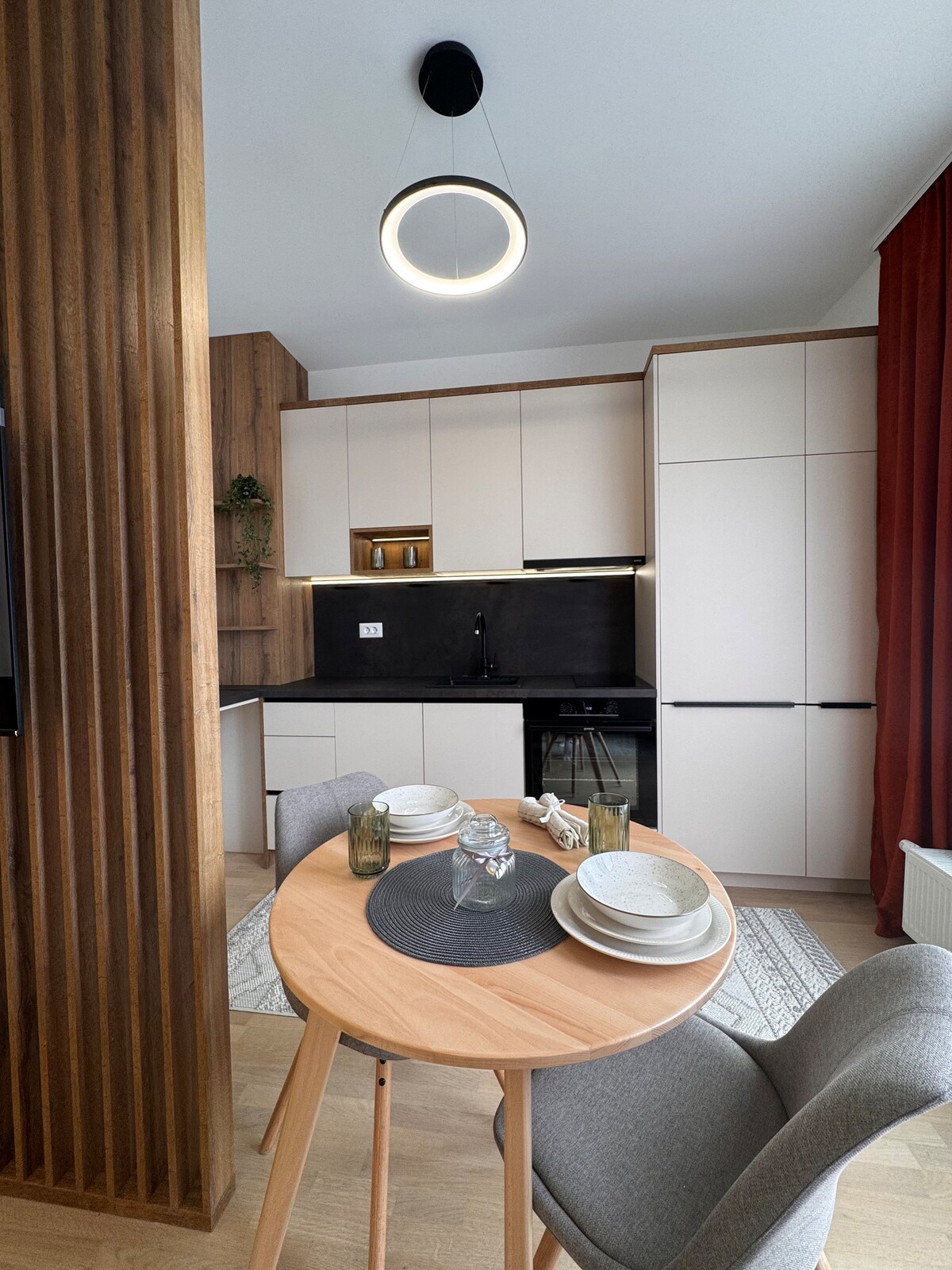Wyjątkowa lokalizacja i apartament. Apartament znajduje się w samym centrum miasta, na pierwszym piętrze, naprzeciwko przystanku tramwajowego. Na parterze znajduje się restauracja „Tavola”. Apartament składa się z trzech pokoi i łazienki: salonu, sypialni (1 dodatkowe podwójne łóżko) oraz kuchni/jadalni (z kolejnym podwójnym łóżkiem).