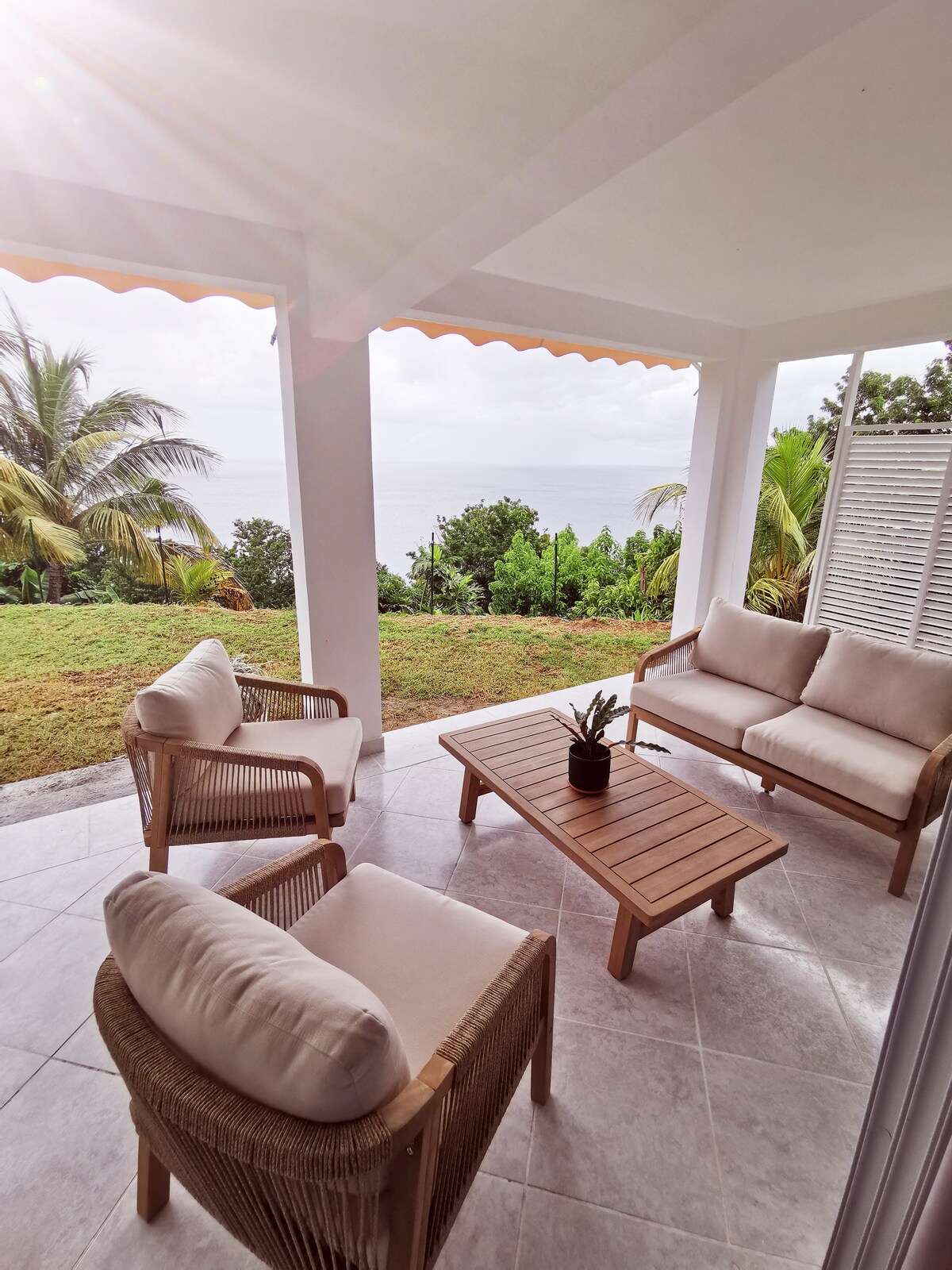 Logement de 110m² avec vue magnifique sur la mer des Caraïbes et l'île de Montserrat. Le logement en bas d'une villa est entièrement privatif et dispose de 3 chambres dont 2 ont accès à une grande salle de bain. La troisième chambre est équipée d'une salle de bain privée avec une baignoire massante. Toutes les chambres sont équipées de grands lits King Size, smart TV 65", Internet fibre. Séjour avec cuisine ouverte sur la terrasse. Ménage de fin de séjour et ménage quotidien inclus dans le prix.