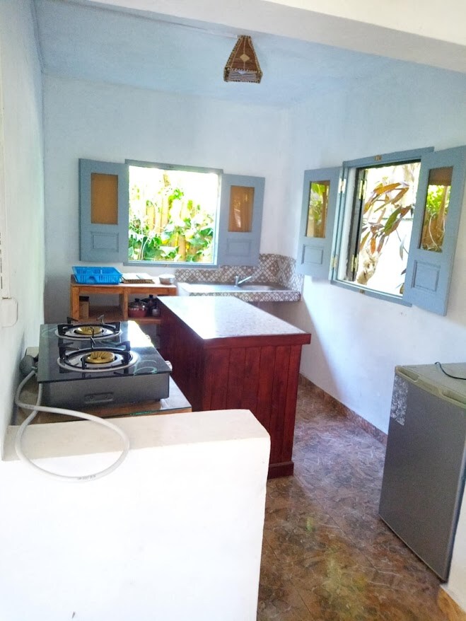 W pełni wyposażony dom z lodówką i TV dobrze zabezpieczone z dozorcą znajduje się 1 km spacerem od plaży. Ciche i relaksujące miejsce ładne I trzymać określone, że używamy panelu słonecznego to się dzieje w złej pogodzie, że panel nie ładuje się bardzo dobrze, więc energia elektryczna jest ograniczona. świece są dostępne. ale czy jest to znak lub jirama (EDF) z Madagaskaru to sprawia, że tjr sceny zrzucając obciążenia.. dobry pobyt