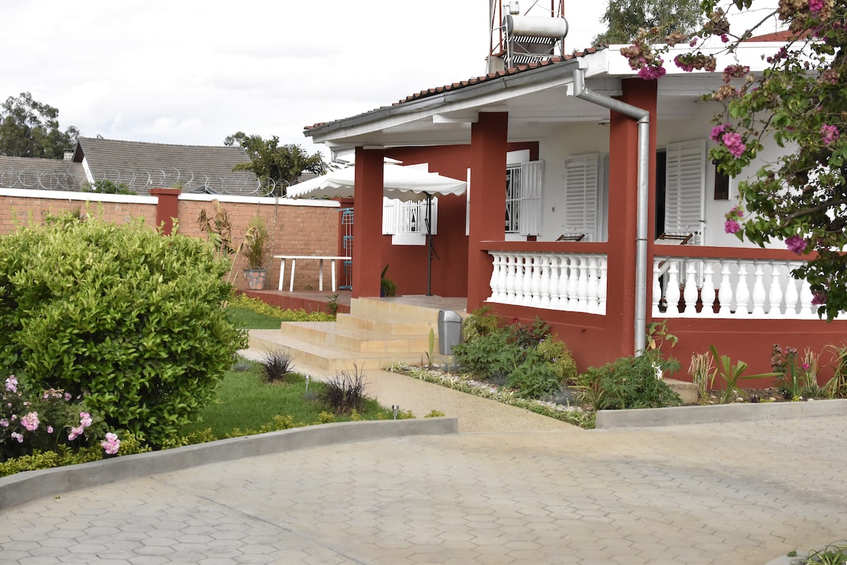 Witamy w domu Alexa w Antananarywie! Nowoczesny dom w tradycyjnym stylu, umeblowany na antresoli z 1 podwójnym łóżkiem, 1 pojedynczym łóżkiem, przytulnym salonem, wyposażoną kuchnią, dużym tarasem z grillem. Cicha okolica w Ambohibao, w pobliżu lotniska i udogodnień. Ogród, dozorca, parking. Wi-Fi, Canal+, gaz, prąd, woda (studnia w razie awarii zasilania), sprzątanie wliczone w cenę. Idealne na pobyty rodzinne lub służbowe.