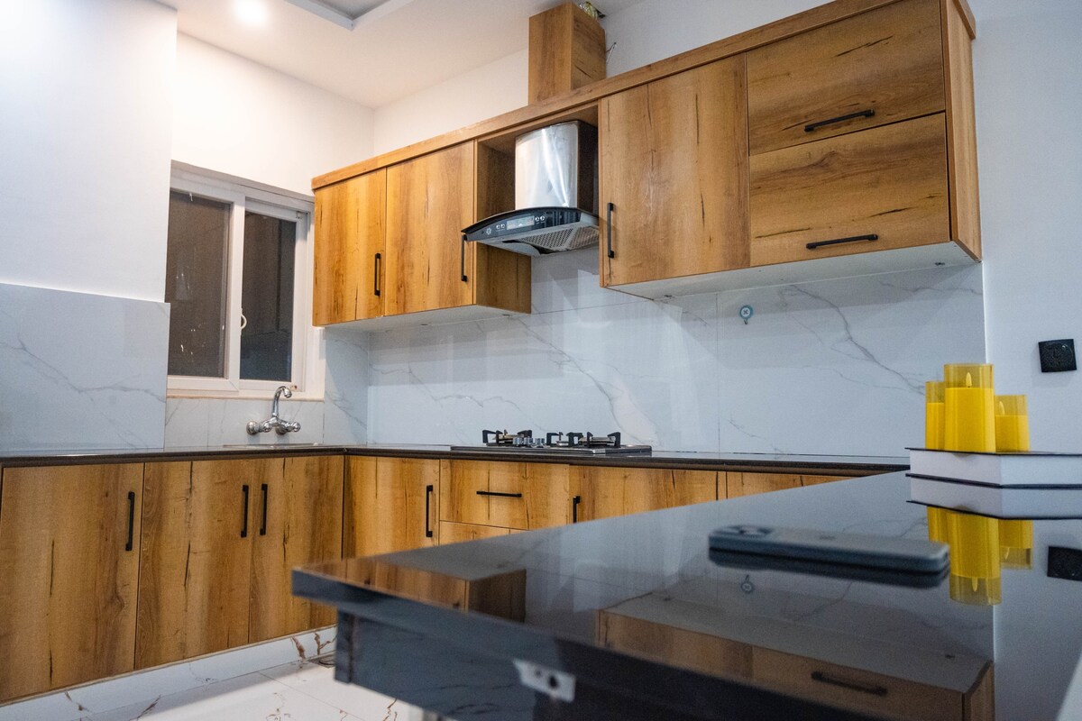 Unwind and indulge in a luxury retreat offered by ComfyCozy. This modern villa is located in a lush green Bahria Enclave Islamabad . While much of the entertainment can be found within Bahria Enclave, (Birds Aviary/ Zoo) you’re just a 10 minute drive from dancing fountains @ Park View Society, the vibrant Food Valley and Rawal lake adding even more excitement to your stay. Grocery is delivered at the doorstep adding convenience. You can also get access to GYM on special discounted rates