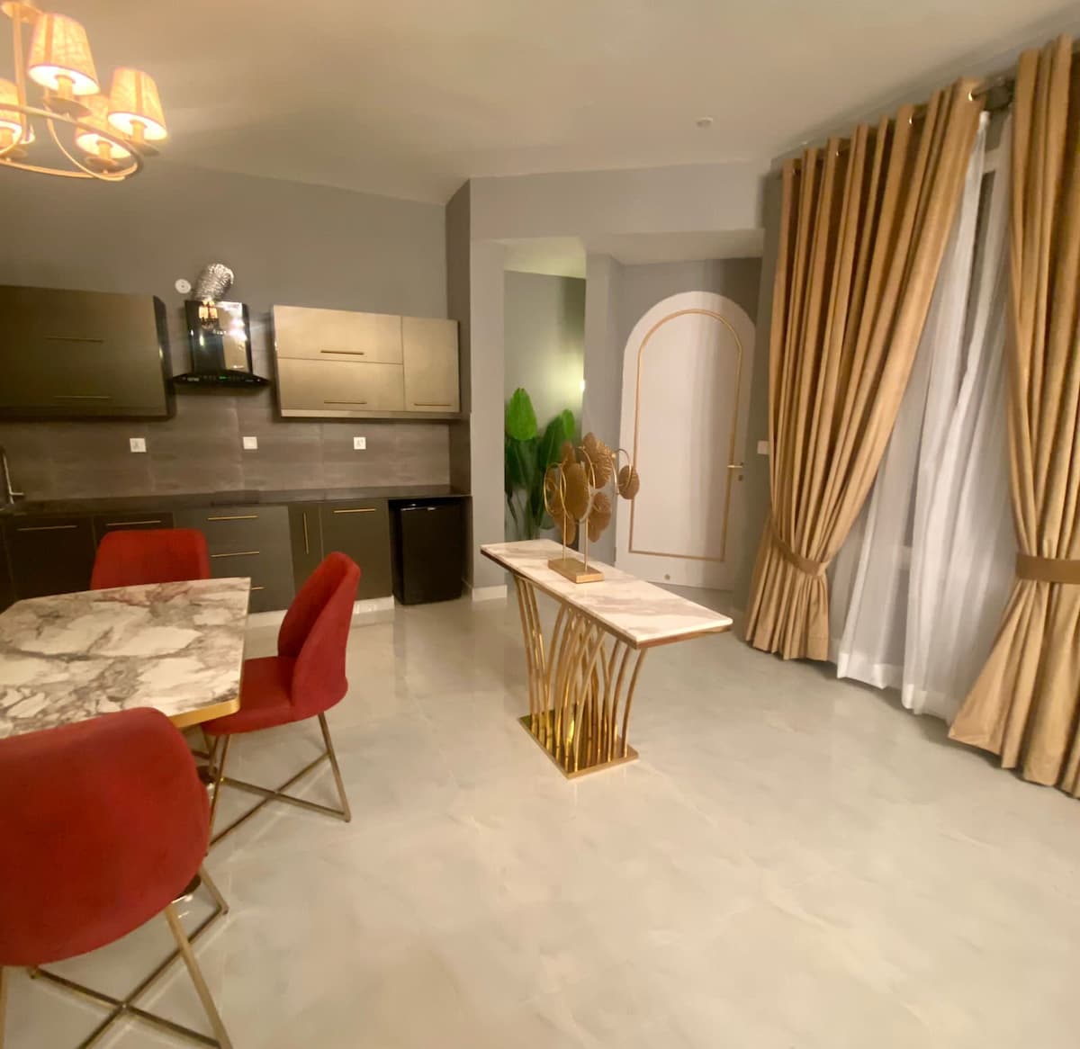 Modern 1-bed apartment in the secure Diplomatic Enclave. Enjoy a bedroom with attached bath, living area with a powder room, separate dining, full kitchen, and a quiet study corner. Loafology café and Sync restaurant are just at 100 feet . A perfect, convenient 10 minutes walk from US Embassy. • Entry assistance into Diplomatic Enclave will be provided • If you do not have a car for entry, please discuss with me as ride hailing apps such as InDrive, Careem, Uber etc are not permitted to enter
