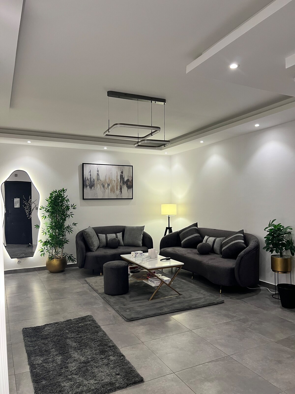 Zrelaksuj się w tym cichym i eleganckim miejscu. Luksusowy apartament z pełnym panoramicznym widokiem na ogród z krzewami jagodowymi, różami, winogronami, inteligentną usługą dostępu, a także dużym nowoczesnym ekranem z technologią UHD 4K z subskrypcją usługi iptv, wszystkie kanały świata, a także kanały sportowe Bein, Saudi Sports, showtime, Netflix i wszystkie filmy i seriale, (( i Mistrzostwa Świata😍)) W pobliżu apartamentu znajduje się meczet. W pobliżu znajduje się park Al-Radf, restauracje, targowiska i luksusowe kawiarnie. Przewodnik turystyczny zapewni gościom wszystkie miejsca, które warto odwiedzić.