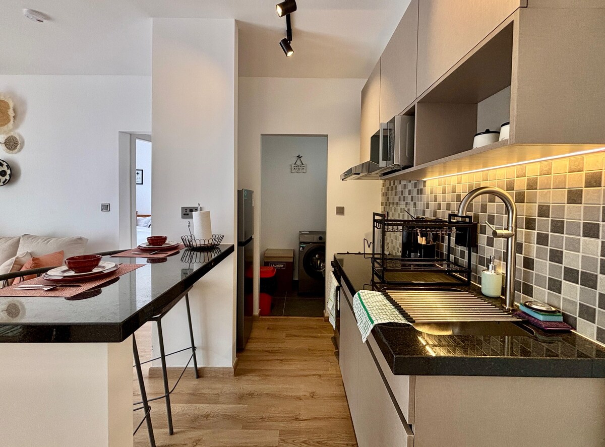 Witaj w wyrafinowanym afro-boho w Tatu City🧡. Spokojna, pięknie urządzona przestrzeń z 1 sypialnią w delikatnych, ziemistych kolorach, szybkim Wi-Fi i w pełni wyposażoną kuchnią. Położone zaledwie 45 minut od JKIA, 30 minut od Nairobi CBD i blisko wybranych restauracji i niezbędnych udogodnień. Idealne dla par, osób podróżujących w pojedynkę, osób podróżujących służbowo lub małych rodzin z łóżeczkiem dostępnym na życzenie.