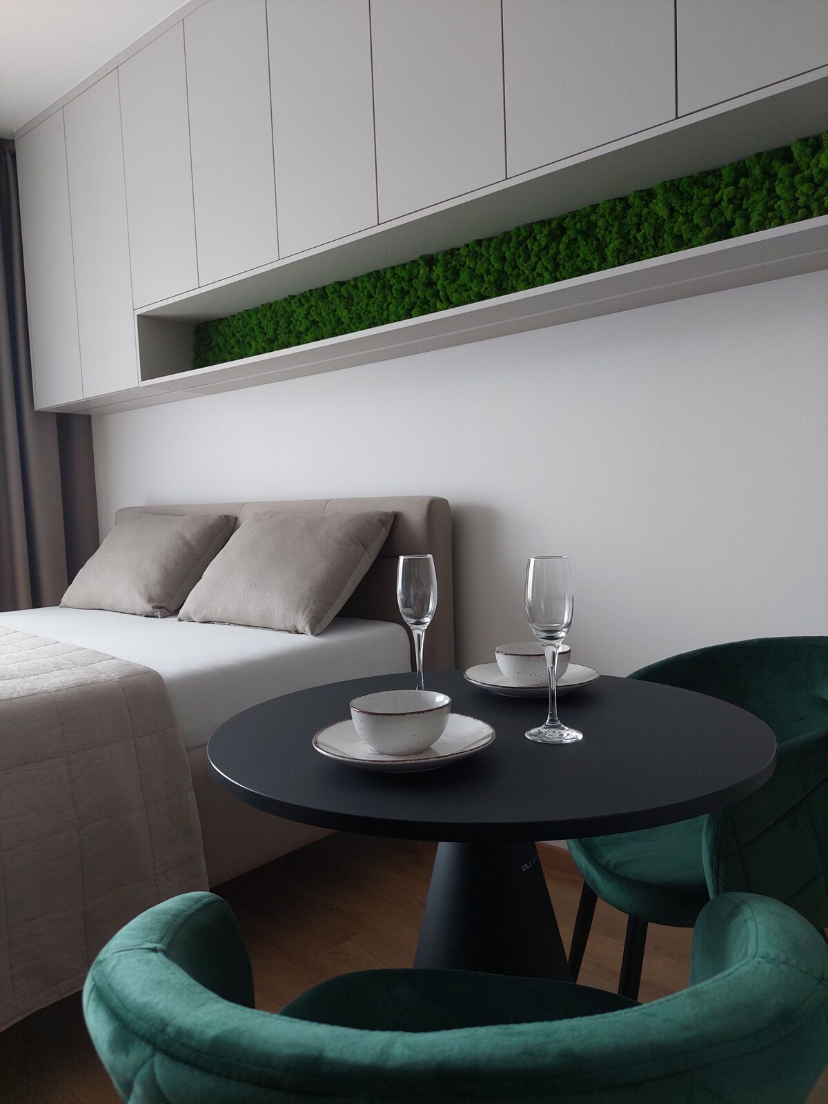 Your new stylish apartment offers comfort stay for up to 2 persons. It is located in a new estate just minutes within downtown. Place is fully furnished (kitchen appliances, wi-fi, Antik Smart TV, etc.) and is ready for your stay. Free parking is provided in designated underground space. Safety of the property and guests is provided by private security company.