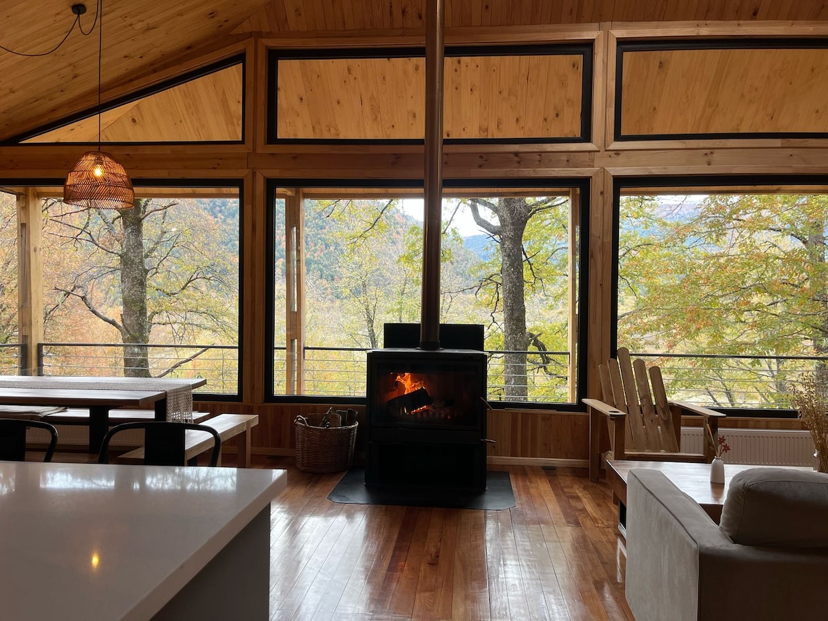 Witaj w swoim wymarzonym miejscu w Malalcahuello! Przytulny dom w środku lasu ze spektakularnymi widokami na Sierra Nevada. Zaledwie 2 km od wioski Malalcahuello, 15 minut od ośrodka narciarskiego Corralco i gorących źródeł oraz 4 minuty od supermarketu i restauracji. Idealny do relaksu, pracy lub jazdy na nartach: ma Starlink, telewizor z streamingiem, gry planszowe, miejsce do pracy i schowek na sprzęt. Przyroda i komfort w Malalcahuello! Mamy wszystko, aby Twój pobyt był niezapomniany!