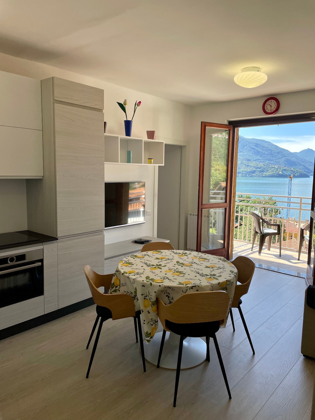Dwupokojowy apartament z pięknym widokiem na jezioro, składający się z pełnej kuchni, sypialni dwuosobowej i salonu z wygodną sofą, pralni z widokiem na prywatny ogród, który jest wyposażony w dwa leżaki i stół śniadaniowy. Do apartamentu można dotrzeć z krótkiej ścieżki dla pieszych. Dostęp do publicznej plaży i parkingu w odległości zaledwie 50 metrów, przystanek autobusowy 250m, bar i trattoria w 5 minut.