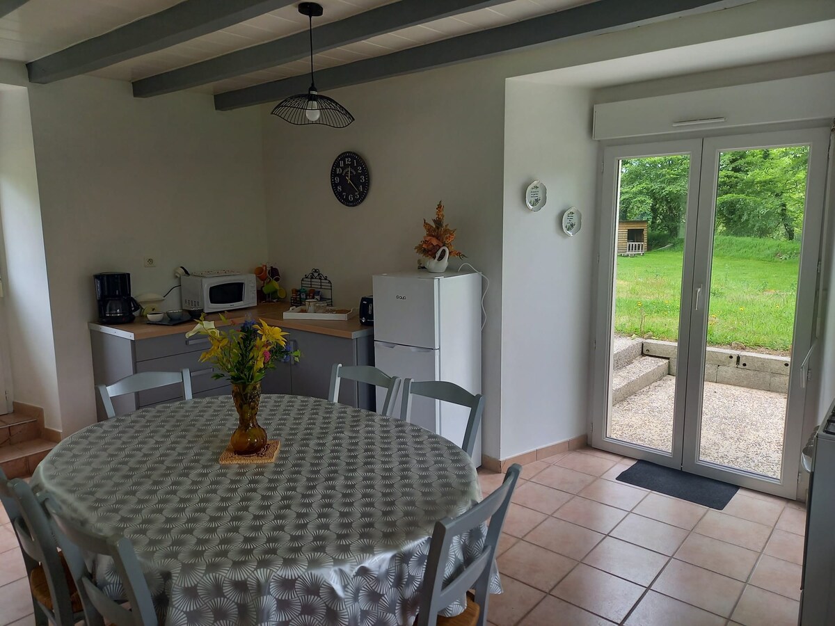Si vous cherchez un endroit calme et apaisant pour un séjour ou une nuit, voici l’endroit idéal! Niché au cœur d’une campagne verdoyante, celui-ci vous offre: Au rez-de-chaussée : - 1 salon-séjour avec petite cuisine (réfrigérateur, cuisinière four électrique, micro-ondes, …), 1 canapé-lit, table et chaises - 1 salle d’eau avec WC - 1 Mezzanine (petite hauteur) à l'étage avec un grand lit de 160 cm x 200 cm À l'extérieur : - terrasse gravillonnée avec salon de jardin, transats, barbecue