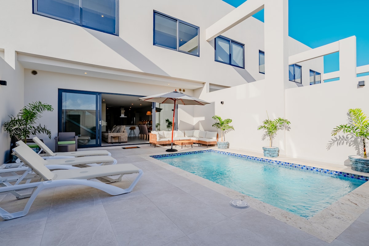 Poznaj Arubę, korzystając z komfortu tego nowoczesnego, wygodnego domu, z którego w 5 minut spacerem można dotrzeć do jednych z najlepszych plaż na świecie. Dom znajduje się w bardzo spokojnej okolicy z PRYWATNYM podwórkiem. Ciesz się własnym błękitnym basenem, grillem, barem tiki i miejscami do siedzenia. Doskonały wybór dla rodzin, które chcą żyć jak mieszkańcy wyspy i korzystać z pobliskich restauracji, klubów nocnych, ośrodków wypoczynkowych, centrów handlowych i plaż.
