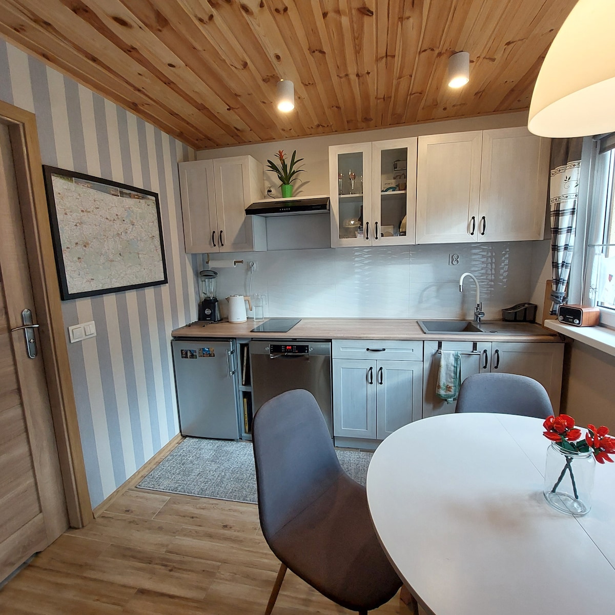 Odkryj ten uroczy dom położony w sercu Mazur - otoczony bujnymi lasami i z własnym jeziorem. Ten pełen nostalgii dom był kiedyś stodołą. Na pierwszym piętrze znajdują się dwie przestronne sypialnie i piękna łazienka. Kuchnia wyposażona jest w duży stół jadalny jako centrum domu. Zrelaksuj się na zadaszonym tarasie lub ogrzej się przy kominku, gdy robi się chłodniej. Skocz do wody, rozpali ognisko... Krótko mówiąc, ucieknij od codziennej rutyny i naładuj baterie w tym wyjątkowym miejscu.