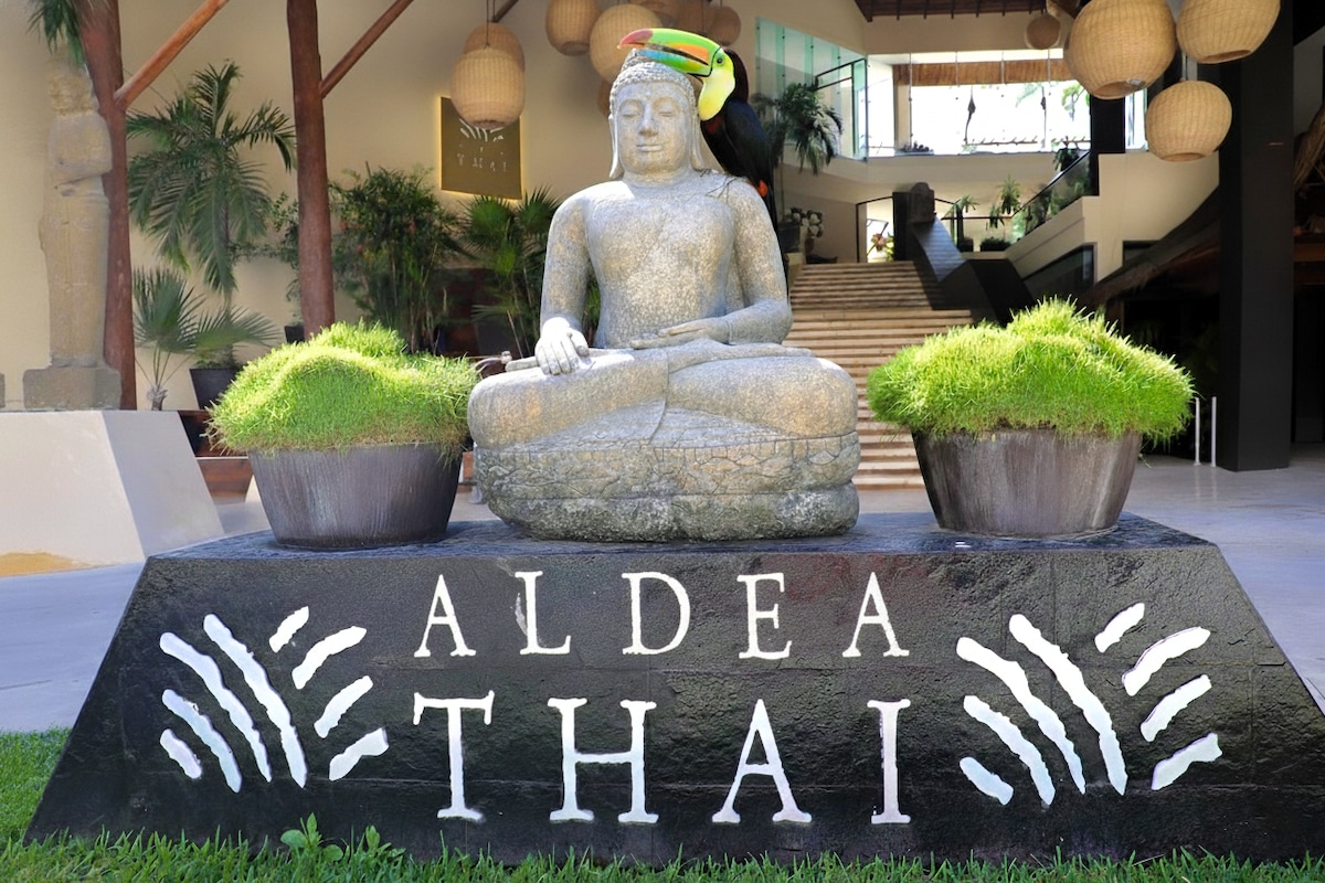 Witaj w swoim Thaï getaway, raju, w którym urok i styl łączą się, tworząc niezapomniane wrażenia. Duże luksusowe studio dla 4 osób z widokiem na ocean w Playa Mamitas i 1 kwadrat słynnej 5 alei. To najlepsze kondominium w Playa z wyposażoną kuchnią, tarasem z widokiem na ocean. Posiada 2 łóżka typu Queen, internet, Roku i najlepszą lokalizację !!! Ciche i przytulne miejsce przeznaczone dla tych, którzy szukają idealnych wakacji i blisko wszystkiego !