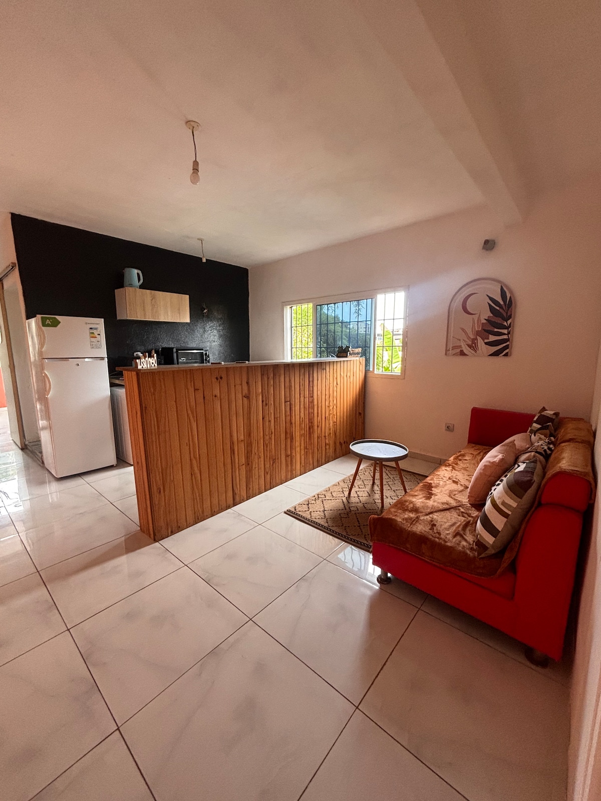 Bienvenue dans cet agréable T2 situé à Passamaïnty, idéal pour un séjour reposant à Mayotte. L’appartement se compose d’un séjour confortable, d’une chambre calme, d’une cuisine équipée, et d’une salle d’eau fonctionnelle. L’espace est pensé pour offrir une ambiance douce et reposante, parfaite après une journée de découverte ou de travail. Ce logement convient parfaitement aux voyageurs seuls, couples ou séjours professionnels.