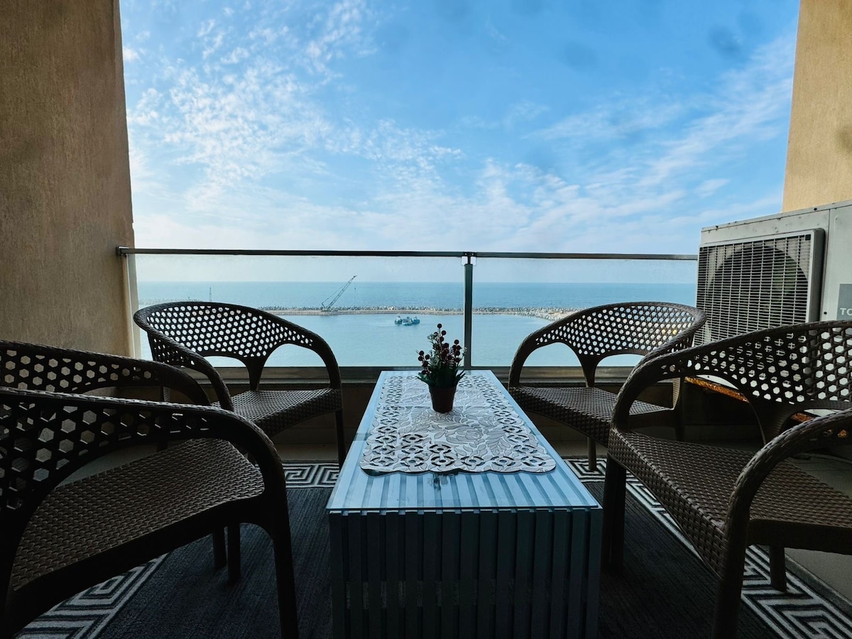 🏖️ Luksusowy apartament przy plaży w Gleam, Alexandria | Niezapomniany wyjazd! ✔️ Panoramiczny widok na morze: obudź się na fale i zapierające dech w piersiach widoki ! ✔️ Elegancki wystrój: klimatyzacja/ogrzewanie w przytulnych sypialniach, stylowy salon, nowoczesna kuchnia . ✔️ Niekończąca się rozrywka: 55-calowy telewizor Smart TV z Netflix i Shahid VIP + szybkie Wi-Fi. ✔️ Bezpieczeństwo: 24/7 , windy. 📍 Najlepsza lokalizacja: Kilka kroków od plaży 🌊 – popływaj lub spaceruj o zachodzie słońca! Najlepsze restauracje/kawiarnie w Gleam ☕ W pobliżu zabytków i sklepów Aleksandrii.ه