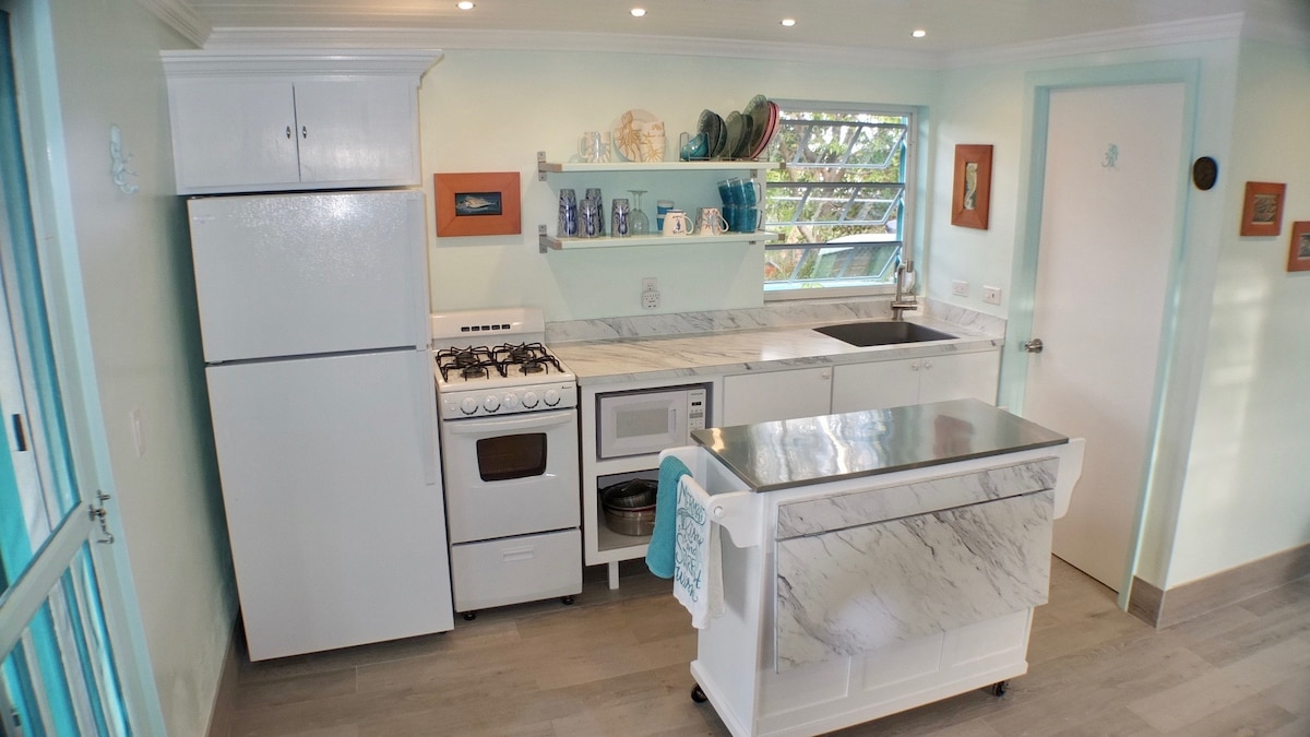 Żyj jak u siebie! Położony w centrum Spanish Wells, w pobliżu plaży, restauracji i sklepu spożywczego. Cay Casita to mały domek w stylu wyspiarskim (układ apartamentu typu studio) idealny na spokojny i bezstresowy wypoczynek. Wiele udogodnień wliczonych w cenę pobytu to korzystanie z rowerów, deski do paddleboardingu, grilla gazowego, dobrze zaopatrzonej kuchni, rzeczy plażowych, dużego zadaszonego patio, bezpłatnego szybkiego internetu Wi-Fi i przestronnego prysznica na świeżym powietrzu.