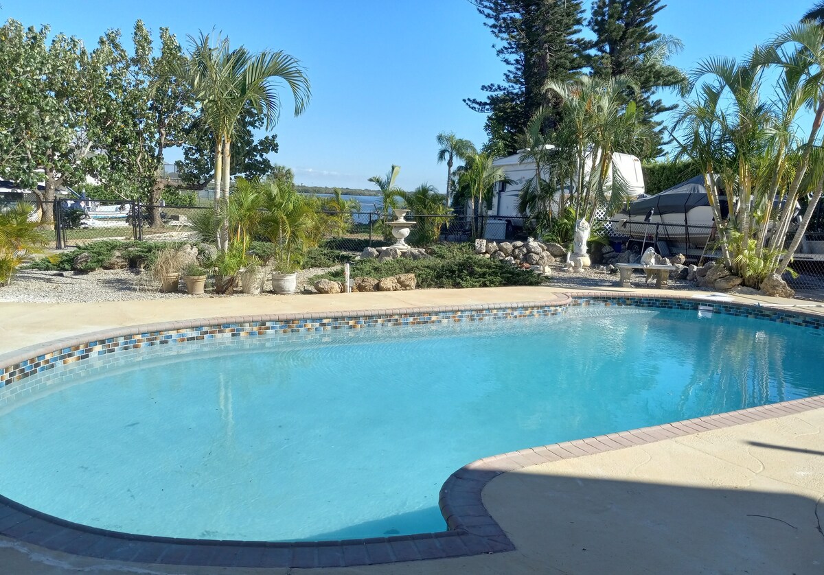 You deserve to vacation in style! This spacious upgraded, fully loaded RV is located a few feet away from Sarasota Bay. Totally private. With jaw-dropping water views of Bay, Canal & Pool. Free Parking. Close to everything you need. Great for fishing & boating. Dock & trailer storage available. Saltwater Jacuzzi, Sauna + other amenities. Good size Fridge/Freezer. Gas stove, Electric hotplate. Private Outdoor Grill + Dining Area. Towels, Linens, Blankets, Pillows, Kitchenware included.