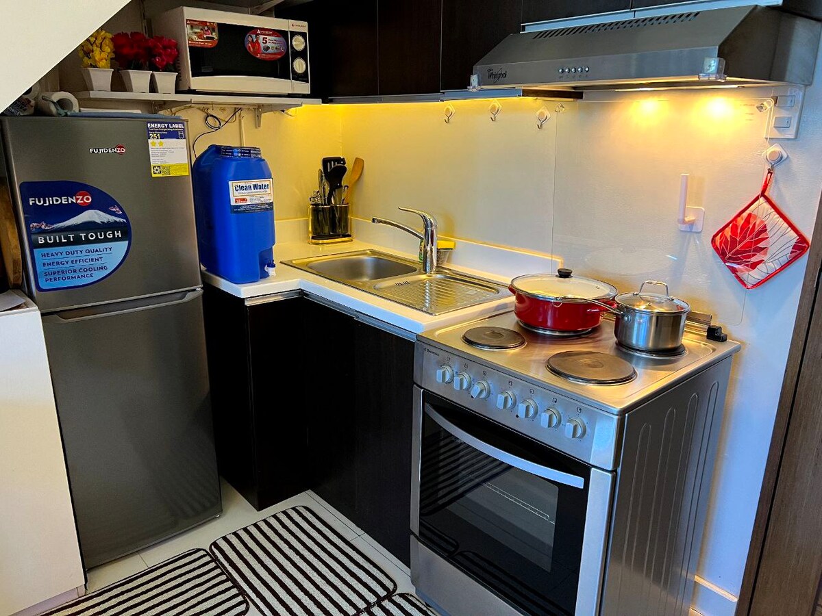 Witamy w The Good Place! Ten przytulny, 35-metrowy loft z 1 sypialnią w Teacher 's Village, QC oferuje idealną równowagę między komfortem a wygodą. Położony w pobliżu kawiarni i sklepów przy ulicy Maginhawa oraz kluczowych miejsc, takich jak UP Diliman, Ateneo, QC Circle, Philippine Heart Center i NKTI, jest idealny dla studentów, profesjonalistów i małych rodzin. Loft oferuje bezpłatny parking, Wi-Fi i spokojną atmosferę. Idealne zarówno na krótkie, jak i długie pobyty, z łatwym dostępem do transportu publicznego i wszystkim, czego potrzebujesz!