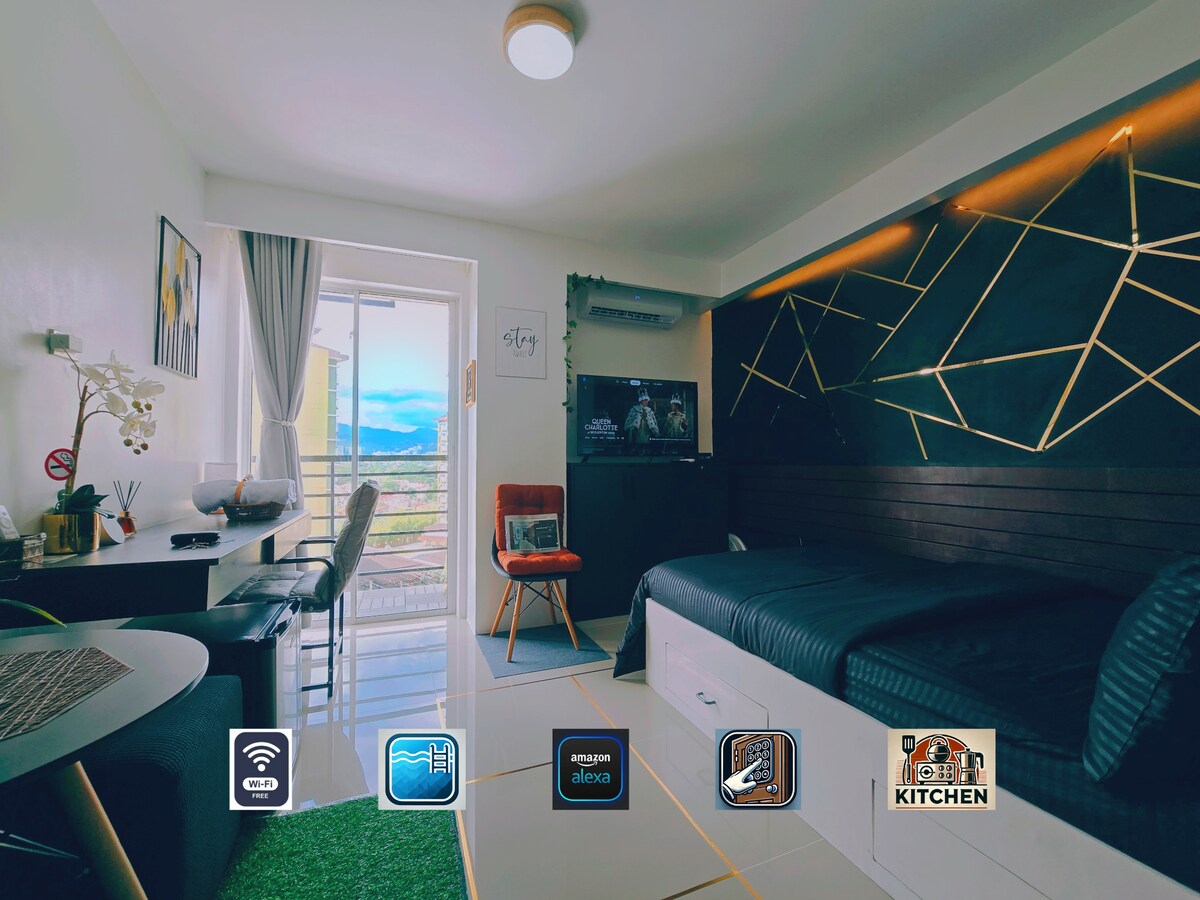 A thoughtfully furnished studio condo conveniently located nearby Cebu's major commercial & business districts - IT Park, Ayala Center & BanTal Corridor. So whether you're visiting Cebu for business or leisure, you're sure to be accessible to your destinations. Take comfort in our homy condo with a great view of the sunrise & the fairways of Cebu Golf Club. Connected to fiber internet, you can still work on-the-go or binge on your favorite Netflix. It will be our pleasure to host you! :)