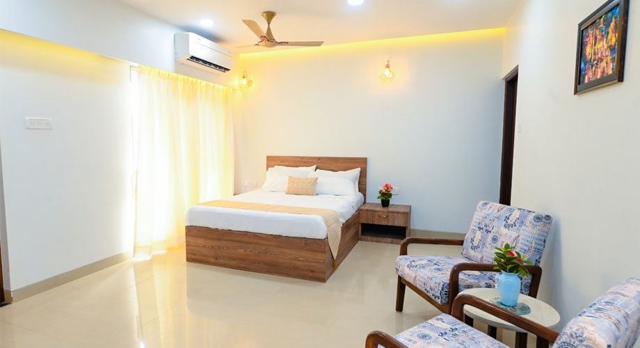 To 2 mieszkania w naszych luksusowych studiach z basenem w naszym hotelu butikowym, które łączą styl z prostotą, dzięki czemu poczujesz się jak u siebie w domu. Każde z nich ma duże wygodne łóżko, w którym można się zanurzyć, pyszne jedzenie i wizualne rozkosze na całym świecie, Pokoje te obiecują nie tylko Twoje oczy, ale i Twoje serce. Usytuowane w samym sercu North Goa, 5 minut drogi od Mall De Goa, wszystkie inne popularne miejsca, w tym plaże, miejsca imprezowe, historyczne miejsca itp. znajdują się w odległości około 5-15 km.