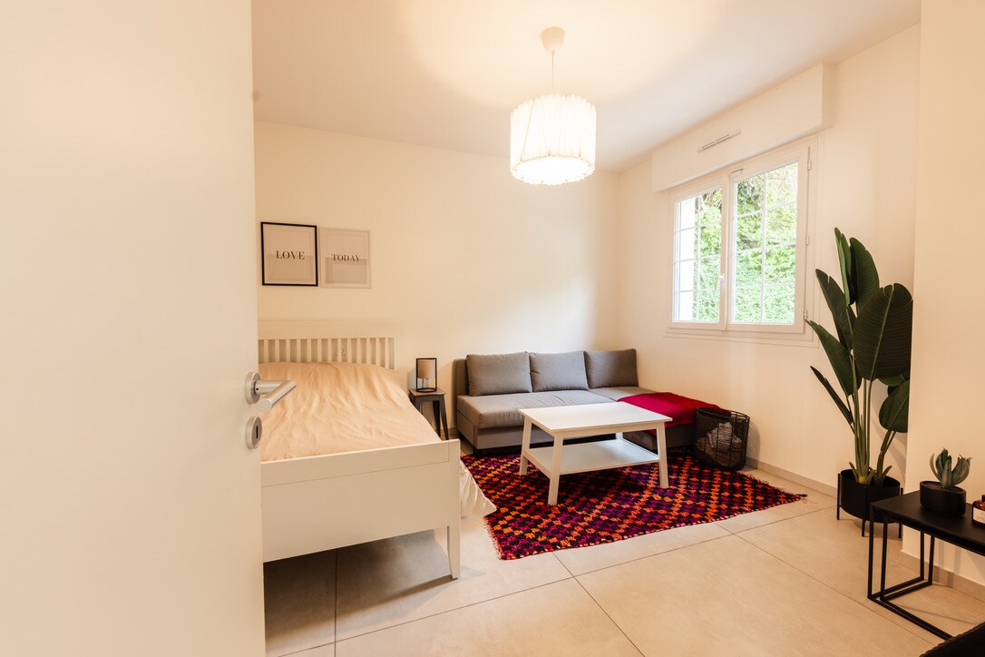 Ładne studio o powierzchni 20 m2, przytulne i jasne, 10 minut od dworca kolejowego, 3 minuty od lasu Senart. Witamy Państwa w tym pięknym miejscu z niezależnym wejściem od strony ogrodu. Studio składa się z wygodnego łóżka (nowe materace), biurka, szafy oraz łazienki z toaletą i prysznicem. Możliwa jest wypożyczalnia rowerów. W pokoju do Państwa dyspozycji jest zestaw do parzenia kawy i herbaty oraz lodówka.