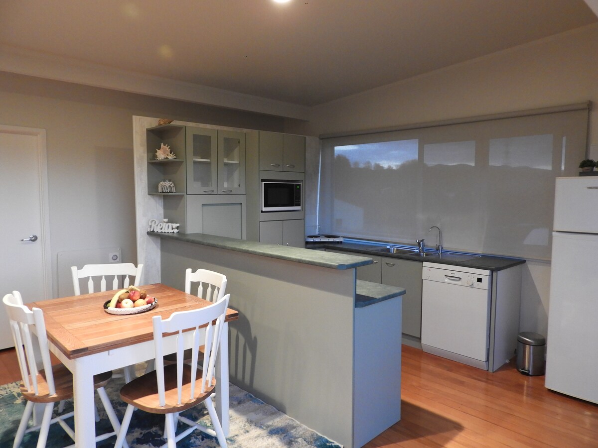 Ganeden Eco Retreat znajduje się z widokiem na doliny rodzimego buszu i pastwiska. Ganeden opiera się wyłącznie na wytwarzaniu energii słonecznej i jest przyjazny dla ziemi. To miejsce oferuje komfort i zrównoważony rozwój. Znajdziesz się od 5 do 15 km od niektórych rozległych białych piaszczystych plaż NZ, oszałamiających spacerów, kawiarni i zajęć na świeżym powietrzu. Twoje zakwaterowanie to połowa głównego domu. Jest całkowicie zamknięty dla Twojej prywatności z prywatnym dostępem i tarasem na zewnątrz. Grill na życzenie. Nieodpowiednie dla dzieci.